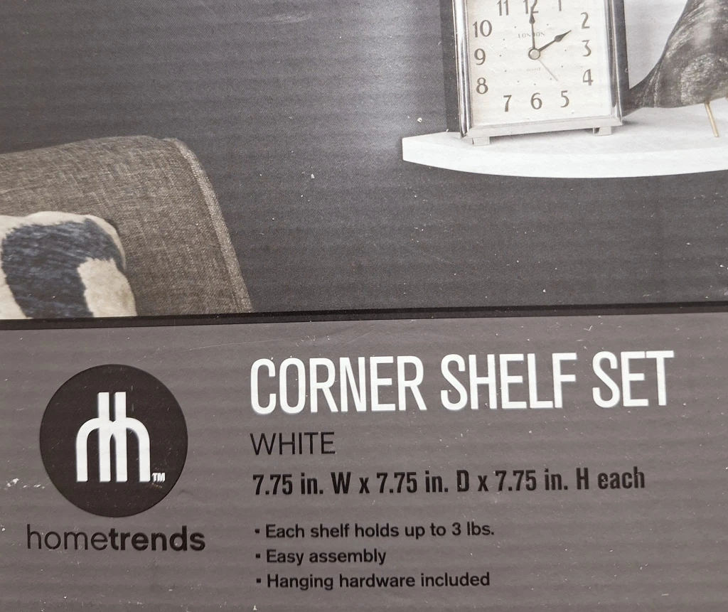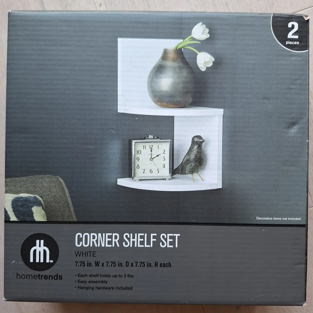 New in Original packaging... Hometrends brand Corner floating shelf unit. Lovely, strong piece and each shelf can hold 3 lb. Please see Pic 2 for dimensions. Will make a great gift!