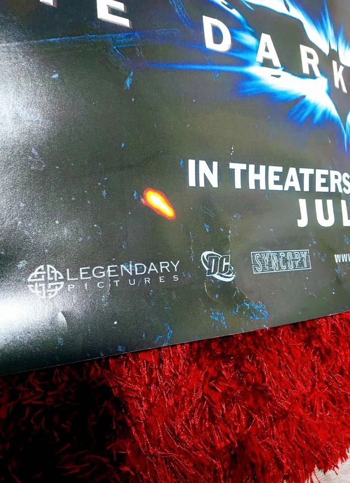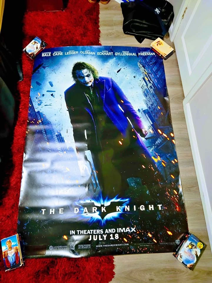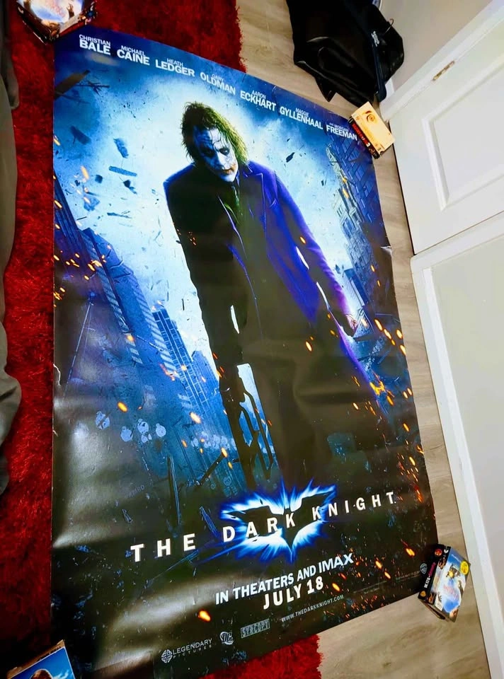 2008 Rare 1 of 1 Heath Ledger Dark Knight Joker Original Life Size Movie Theater Promo Poster. Excellent condition with normal surface wear and 2 edge rips (rated 7/10). Size: 6ft x 4ft This is an original life size movie theater wall textured laminated poster. No need to frame or laminate; it's ready to go. Pickup location is Oshawa.