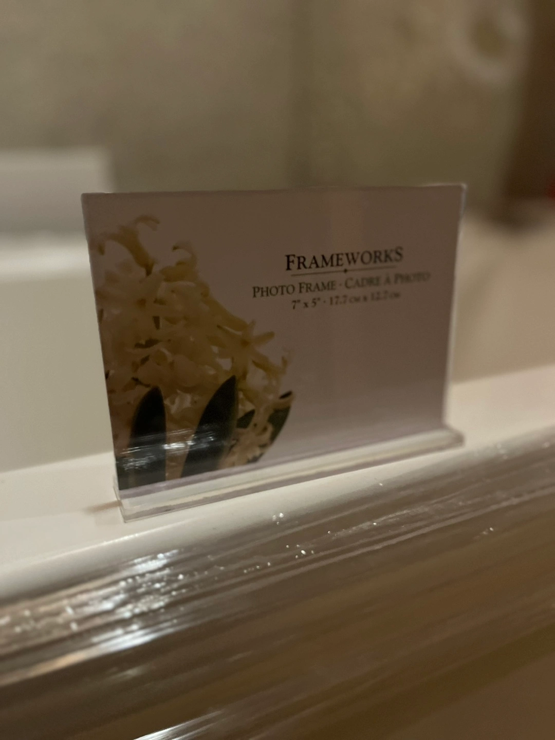 The second acrylic frame is unused but has one light scratch on it.
