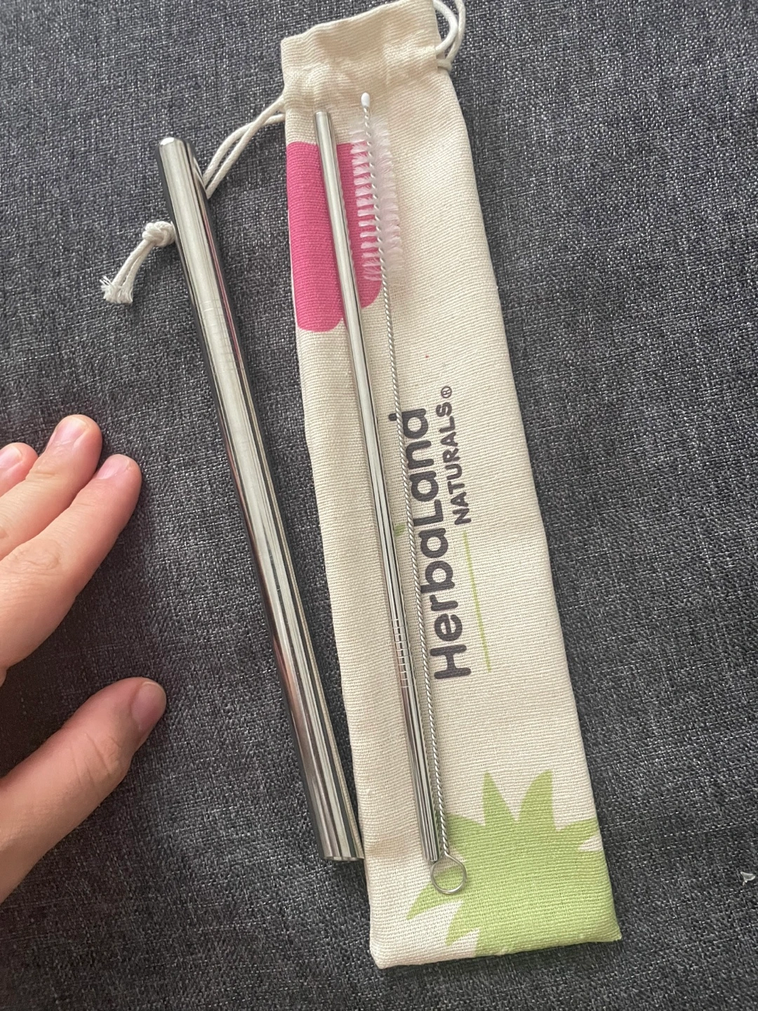 Selling a set of stainless steel straws from HerbaLand Naturals! It includes a straw, cleaning brush, and carrying pouch, perfect for on the go