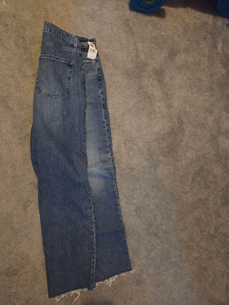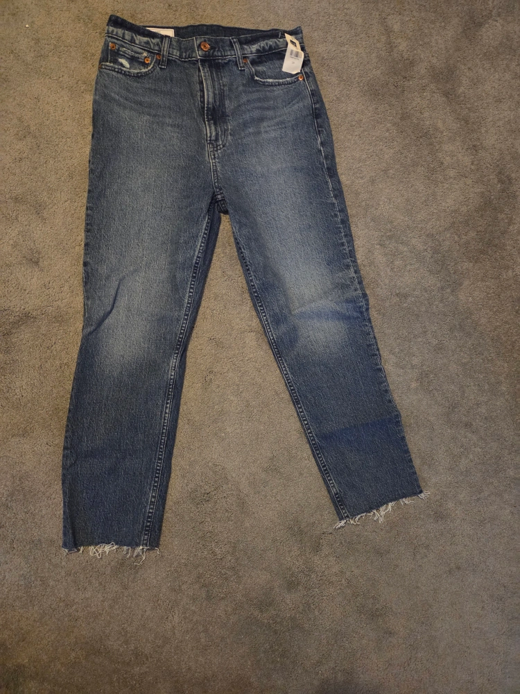 These are a pair of Gap high-rise jeans in size 30. They're in great condition and ready for a new home! The denim is a classic wash, perfect for any casual outfit. They feature a frayed hem for a trendy look