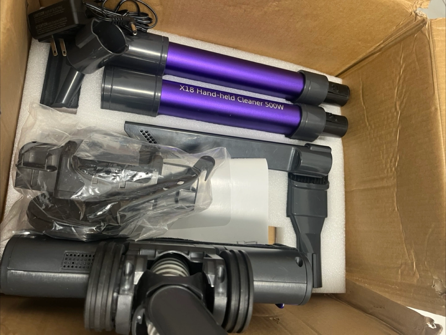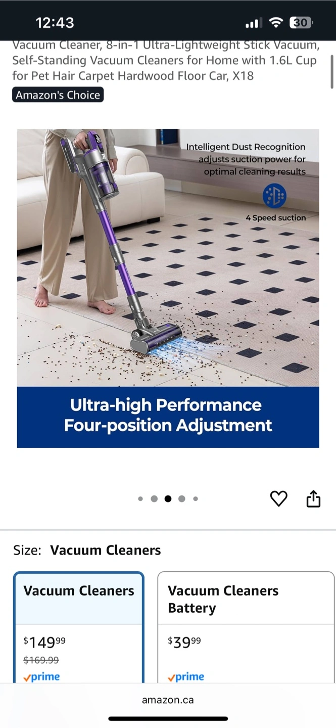 142Selling an X18 Ultra-Lightweight Stick Vacuum! It's an 8-in-1 vacuum cleaner perfect for home use, including for pet hair, carpets, and hardwood floors. It features intelligent dust recognition and 4-speed suction for optimal results. The vacuum has an ultra-high performance with four-position adjustment. Comes with multiple attachments including a 2-in-1 brush, sofa brush, and power adapter. Box included!