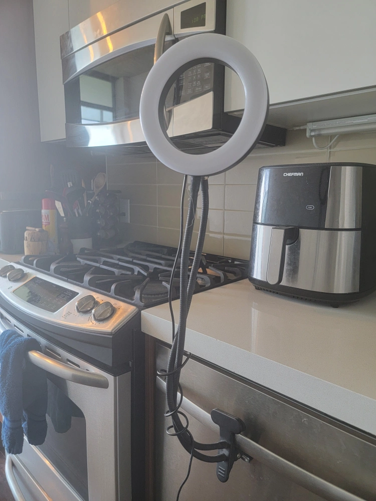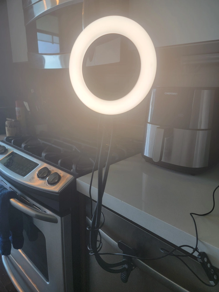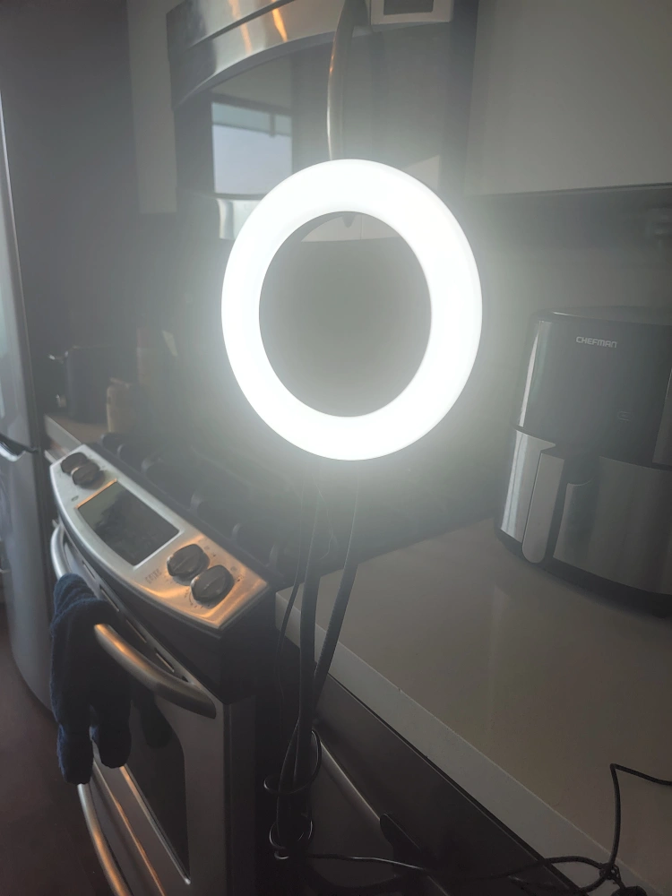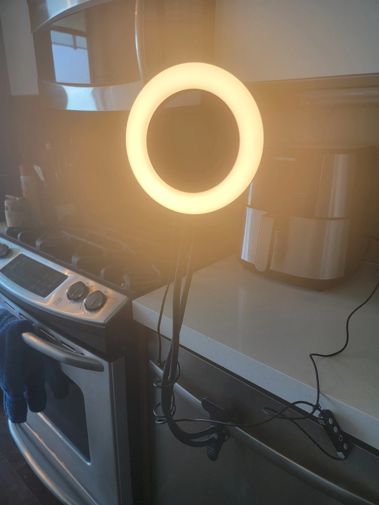 used ring light. the power button is faded, but the light still works great. usb plug-in. 3 modes: night, day, and mix.