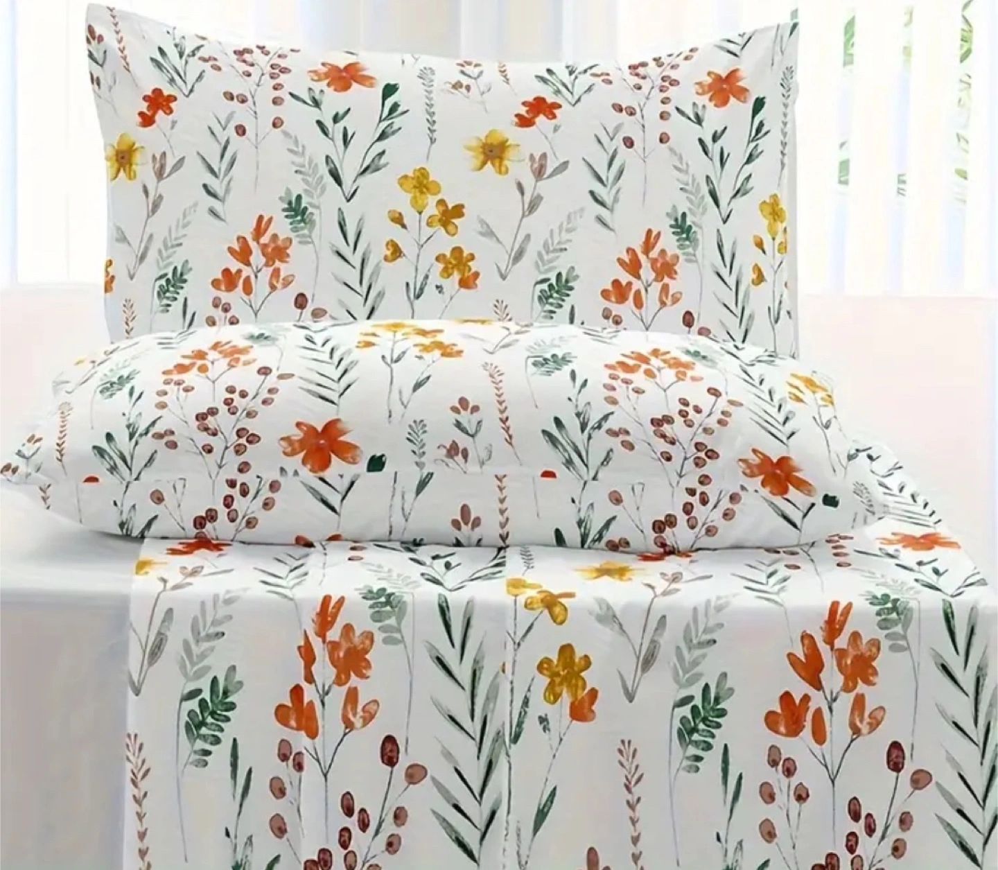 4 pieces King size New Floral Pattern Bed Sheet Set