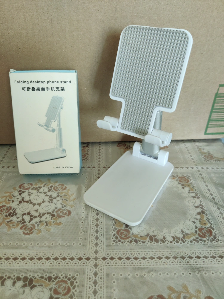 Selling a new handy folding desktop phone stand in white! It's perfect for holding your phone while you work or watch videos. It's lightweight and portable, making it easy to take with you on the go. Comes with the original box!