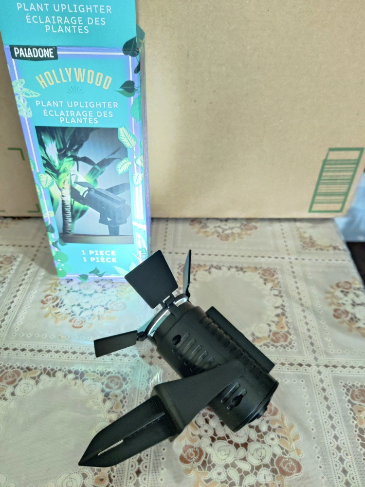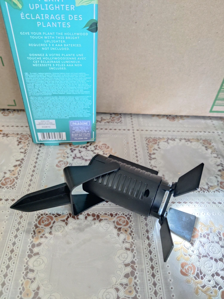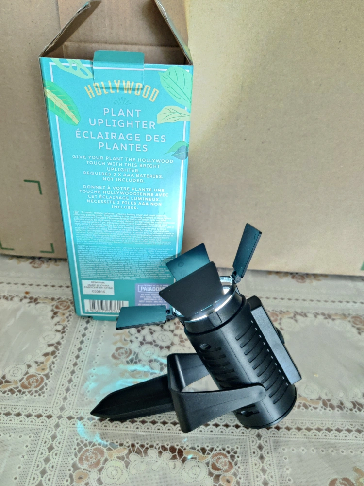 I'm selling a brand new Hollywood Plant Uplighter! decorate your place or give your plant the Hollywood touch with this bright uplighter. Requires 3 AAA batteries (included)