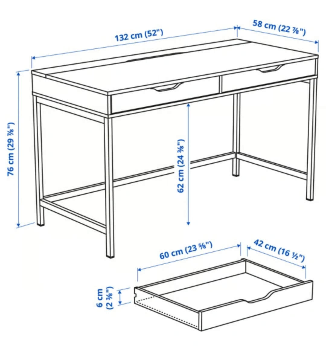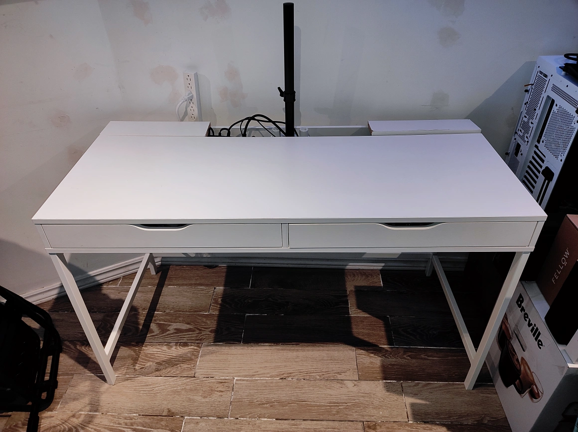 Selling an IKEA Alex desk in white. It features two drawers for storage and a clean, minimalist design. Perfect for a home office or study space!