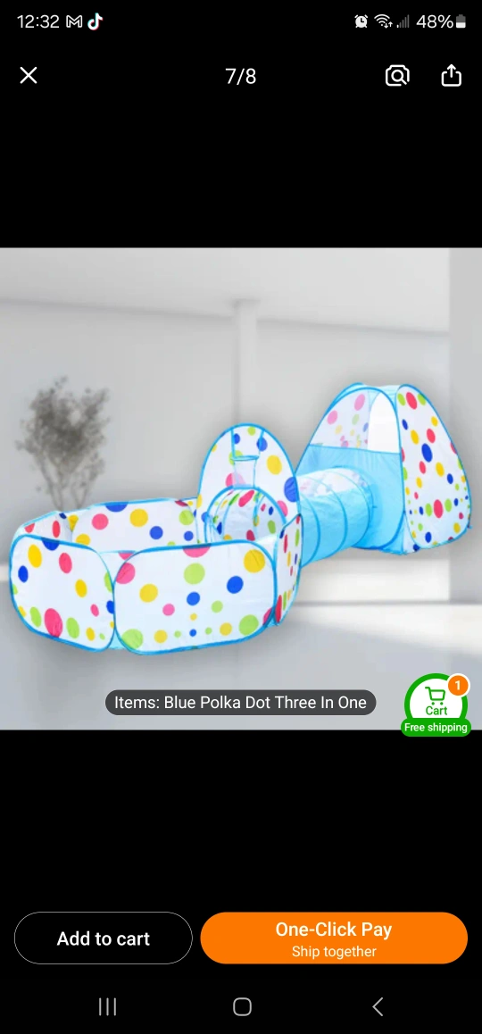 This fun play tent features a blue polka dot design and includes three sections for your little one to explore! It's perfect for indoor or outdoor play and provides hours of entertainment