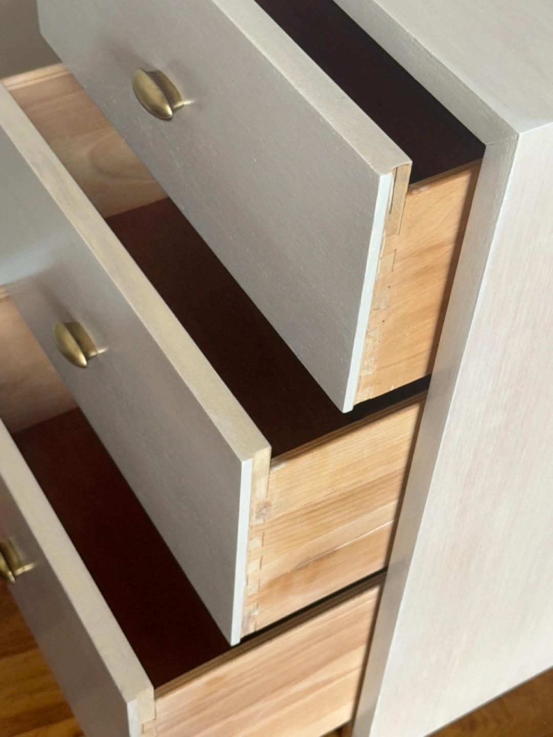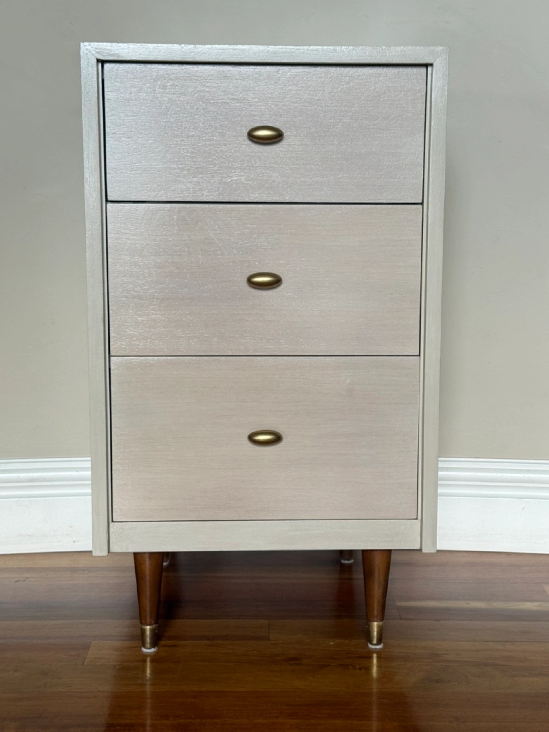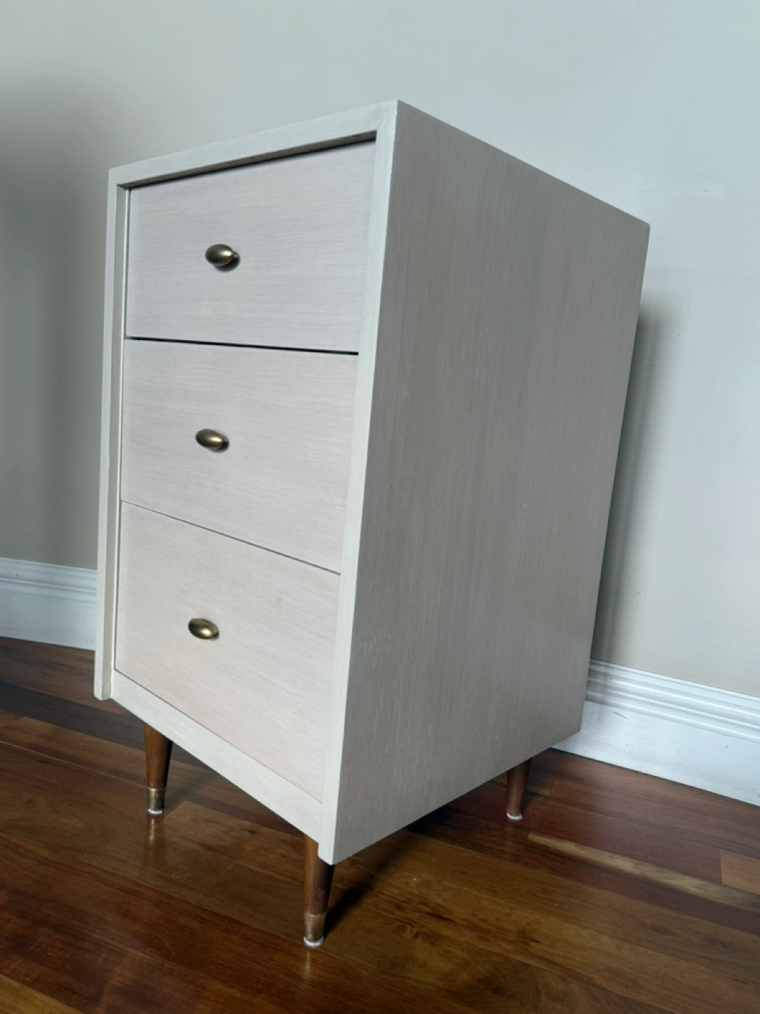 75This vintage, refreshed solid wood dresser would be perfect for a bedside table and ideal for a smaller space. I washed it with Dixie Belle Silk Sand Castle, sealed it with Silk Terra Tuff and beeswaxed the beautiful natural wood drawers that are graded in size. Please see photos for size & condition. Cash and pick up only in W. Hillhurst NW. Thanks for looking!