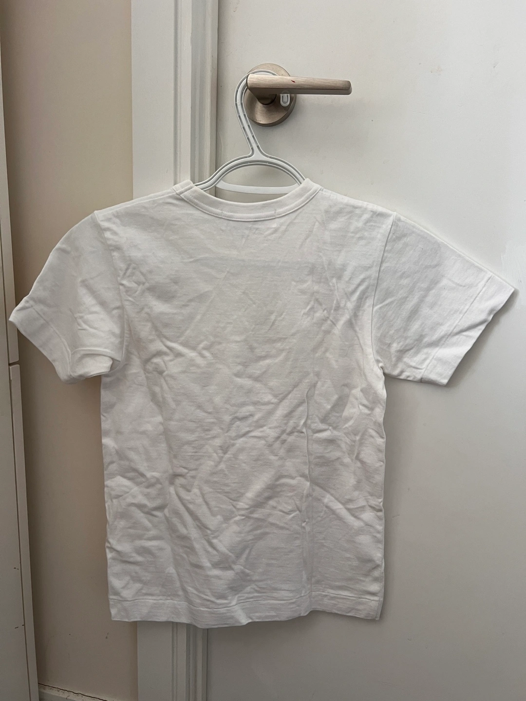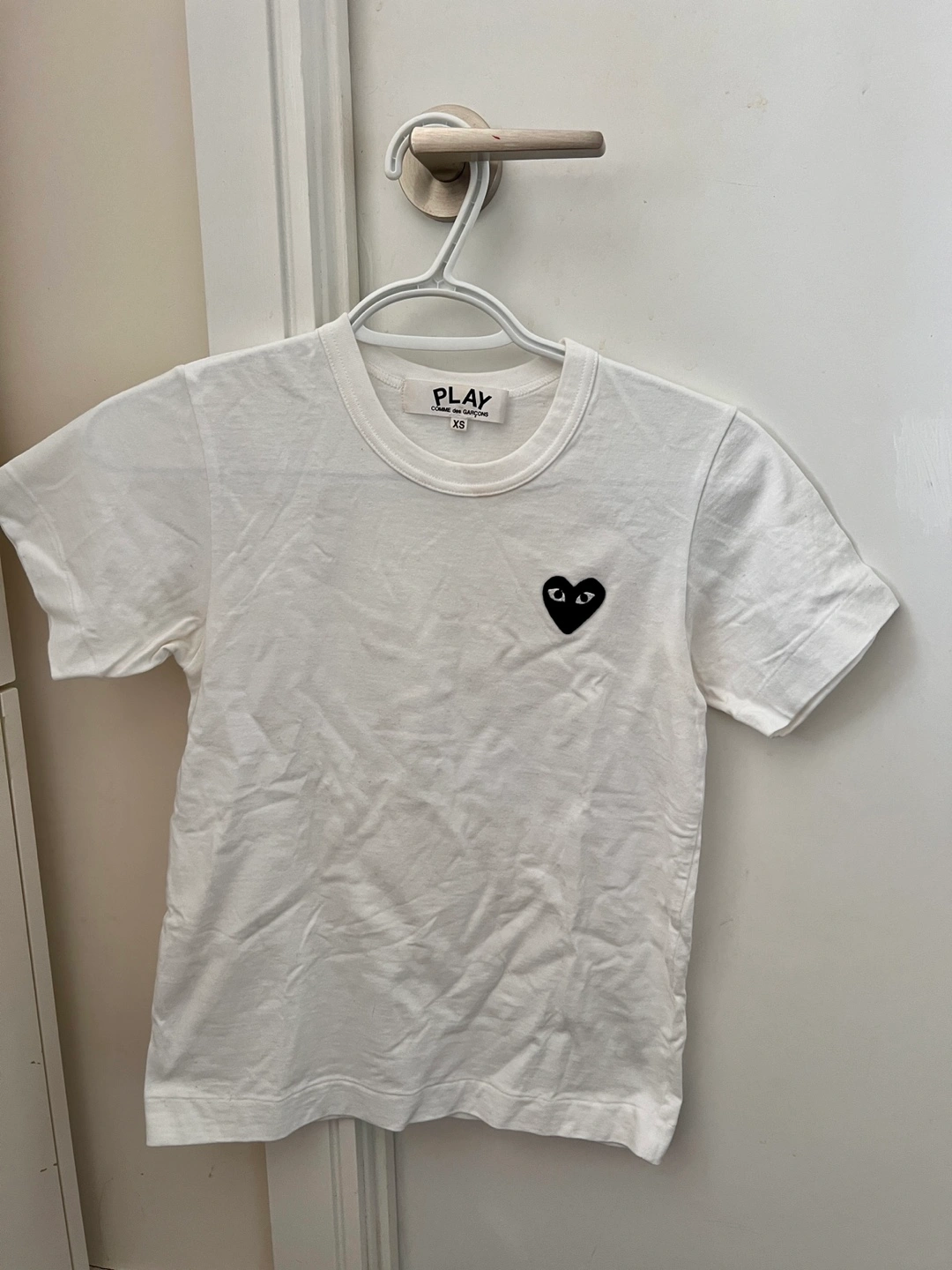 Selling an authentic Comme des Garçons PLAY white t-shirt in size XS. It features the iconic black heart logo. A simple and stylish piece!