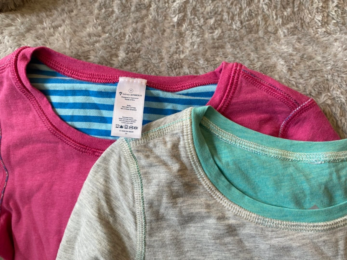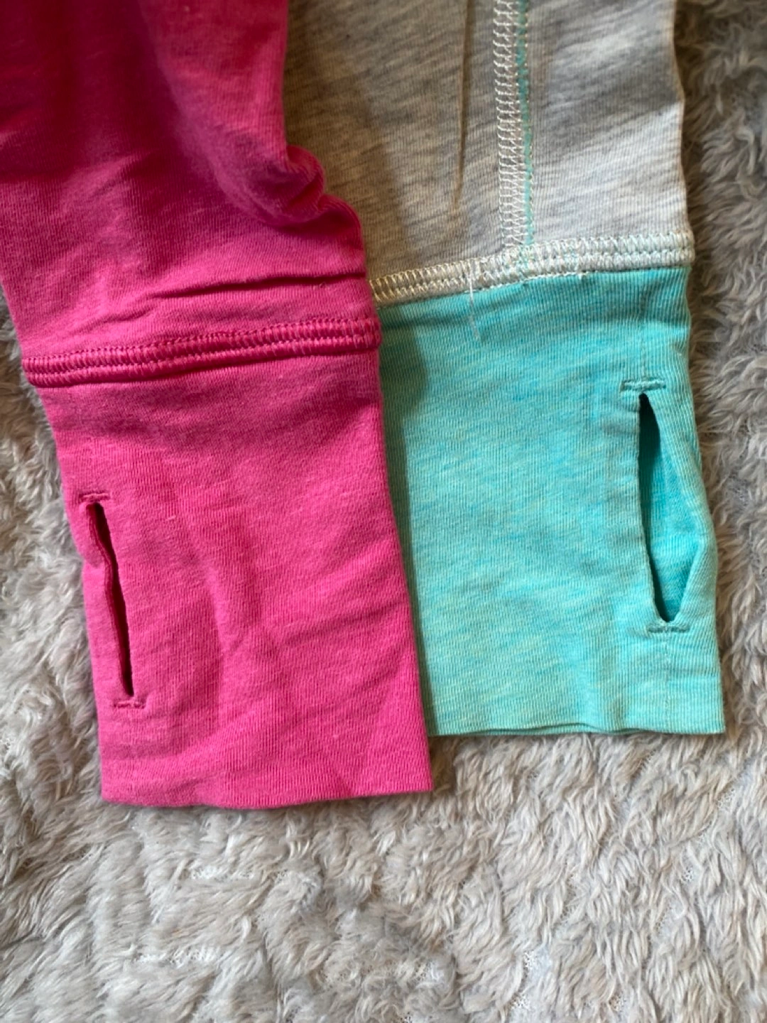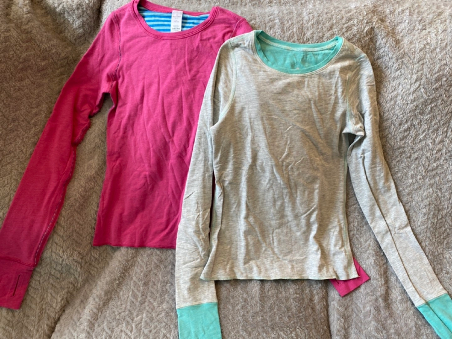 Perfect condition reversible long sleeve shirts with thumb holes. The second pic shows the other side colours. Size 8 barely worn, super soft and soooo cute.