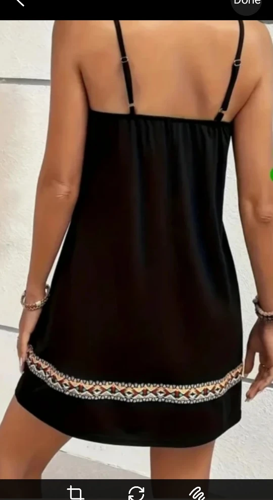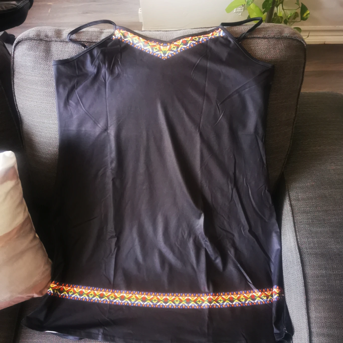 616brand new never worn Here's a cute black sleeveless dress with a colourful pattern at the top and bottom. Xl more like L