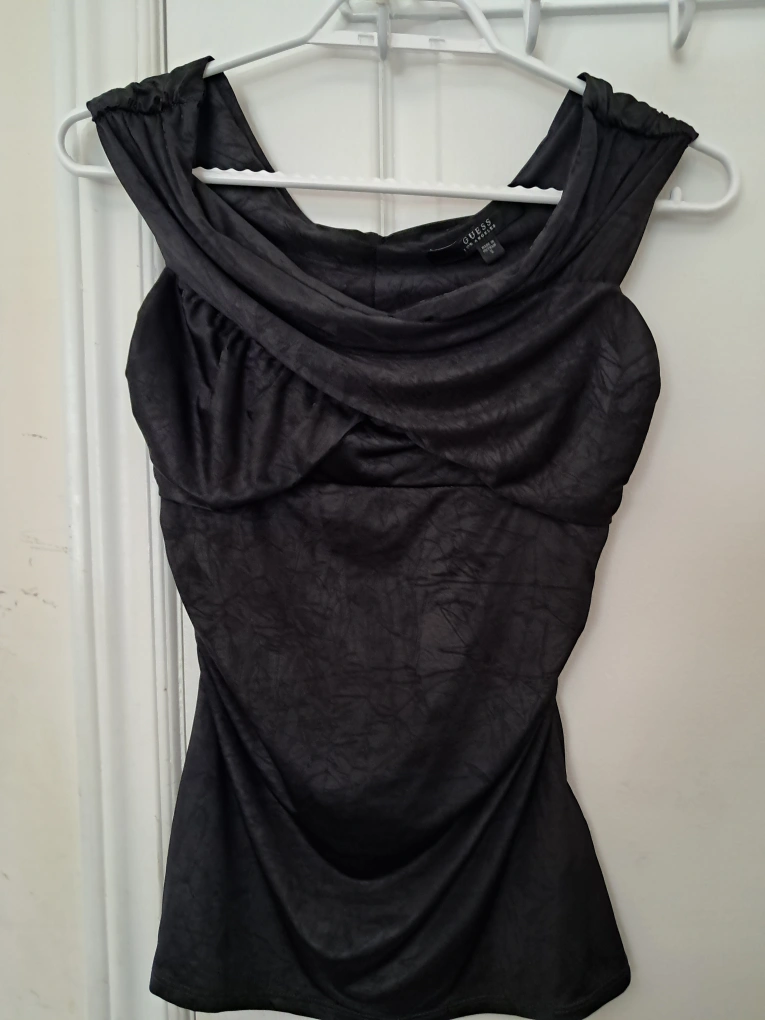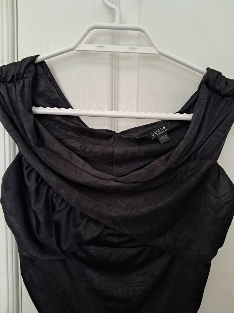 Cute and sezy black Guess top in size medium! It's in great condition and ready for a new home. Perfect for a night out or dressing up a casual outfit