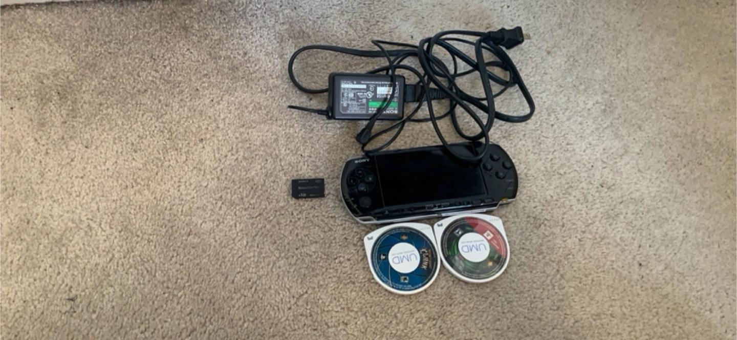 15Selling a used Sony PSP. It comes with the charger, memory card, and two games. Great for some retro gaming on the go!