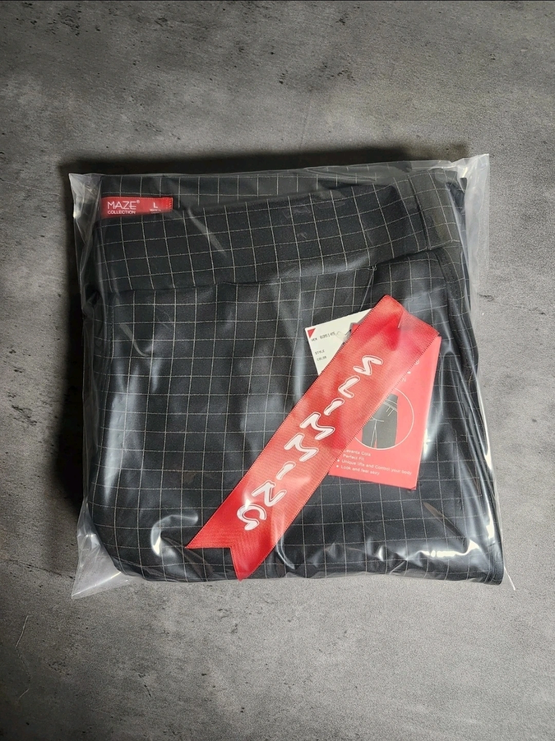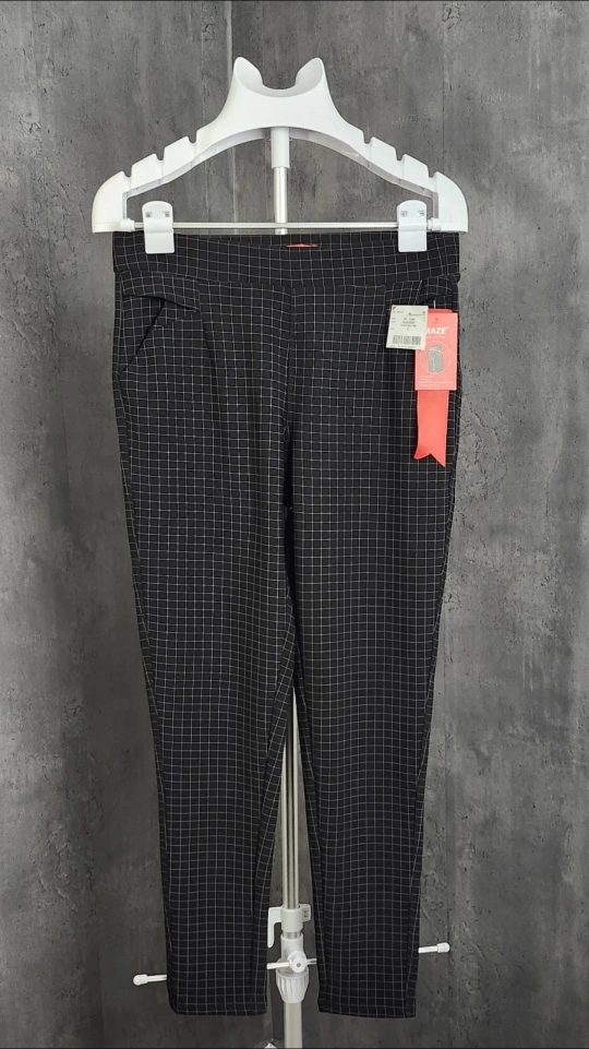 Maze Collection "Levanta Cola" Slimming Plaid Pants Black for Women L