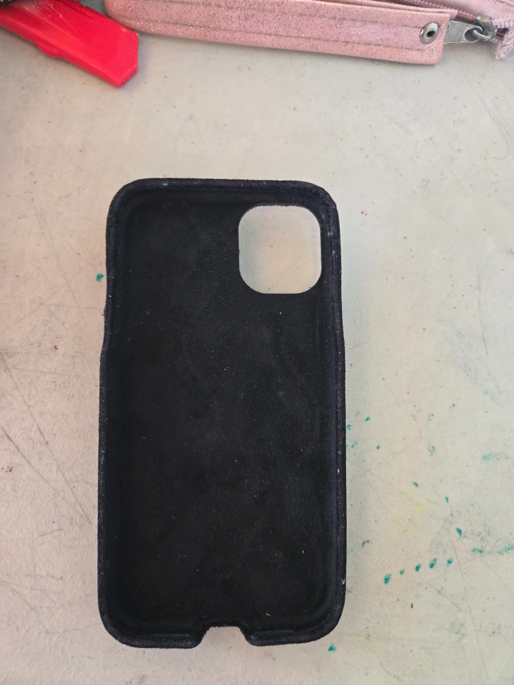 Selling a black Prada iPhone case. It's in great shape and has the iconic Prada logo. The case has a soft, velvety texture and a quilted design on the back