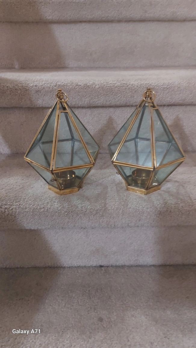 Selling a set of two geometric candle holders. They add a nice touch to any room! They are in great condition and ready for a new home. EACH ONE $25 . CASH DEAL ONLY .THANKS .