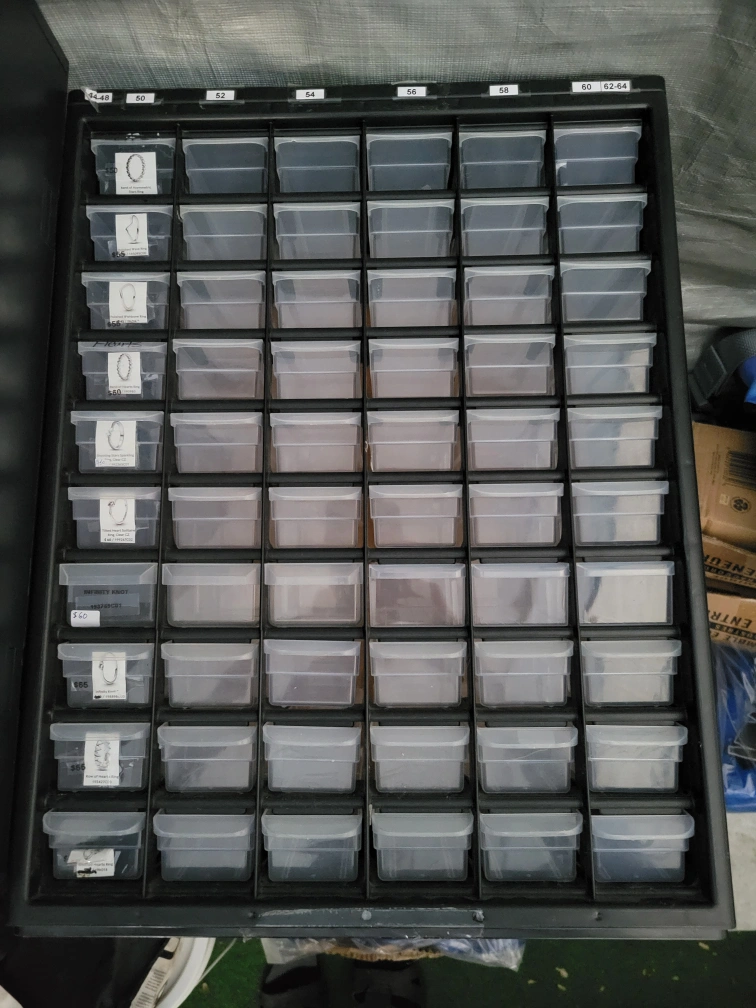 I have a storage cabinet with drawers available. It has a black frame and multiple drawers for organizing small items. The cabinet measures approximately 7 inches in width and 19 inches in height. Great for storing small parts or craft supplies!