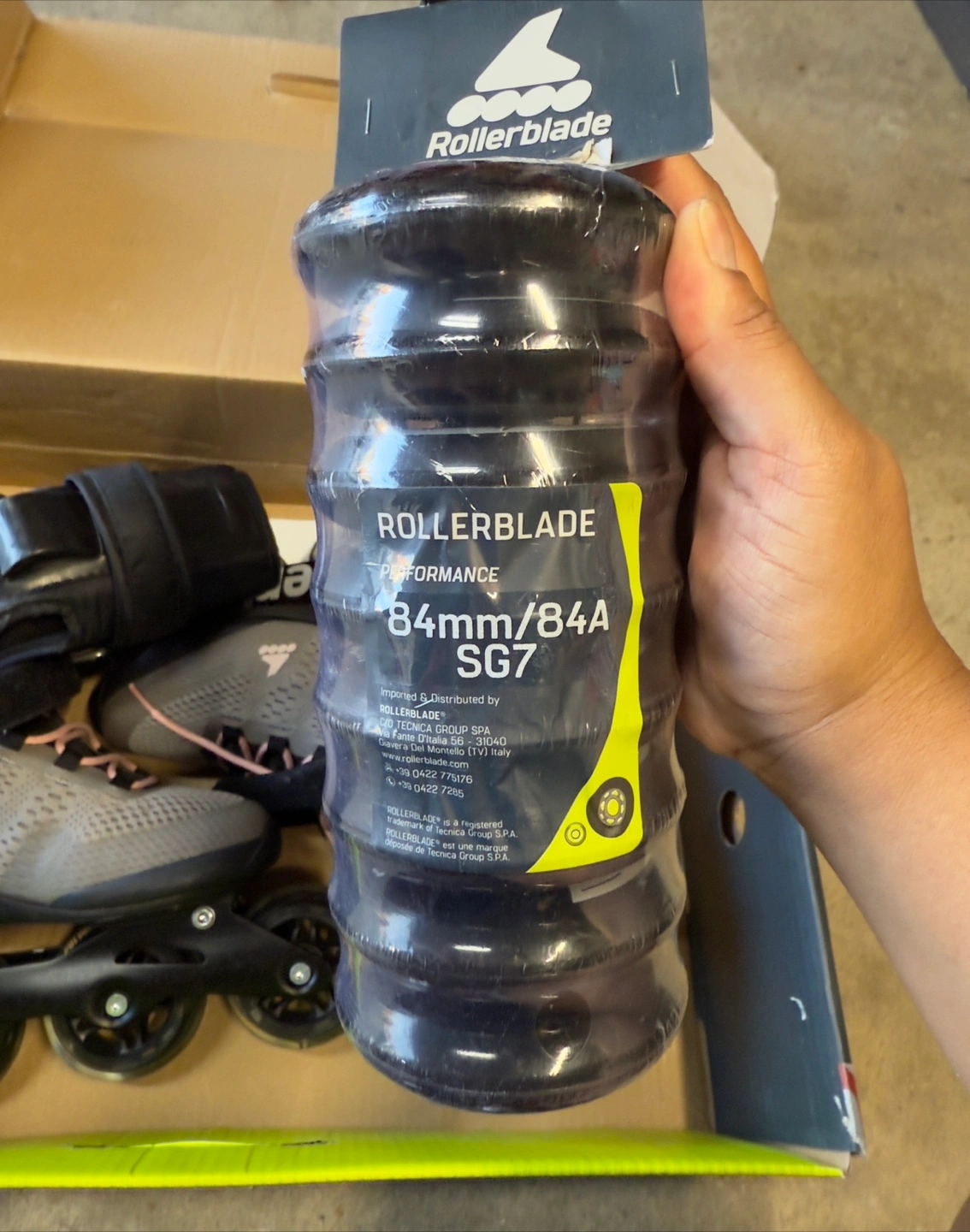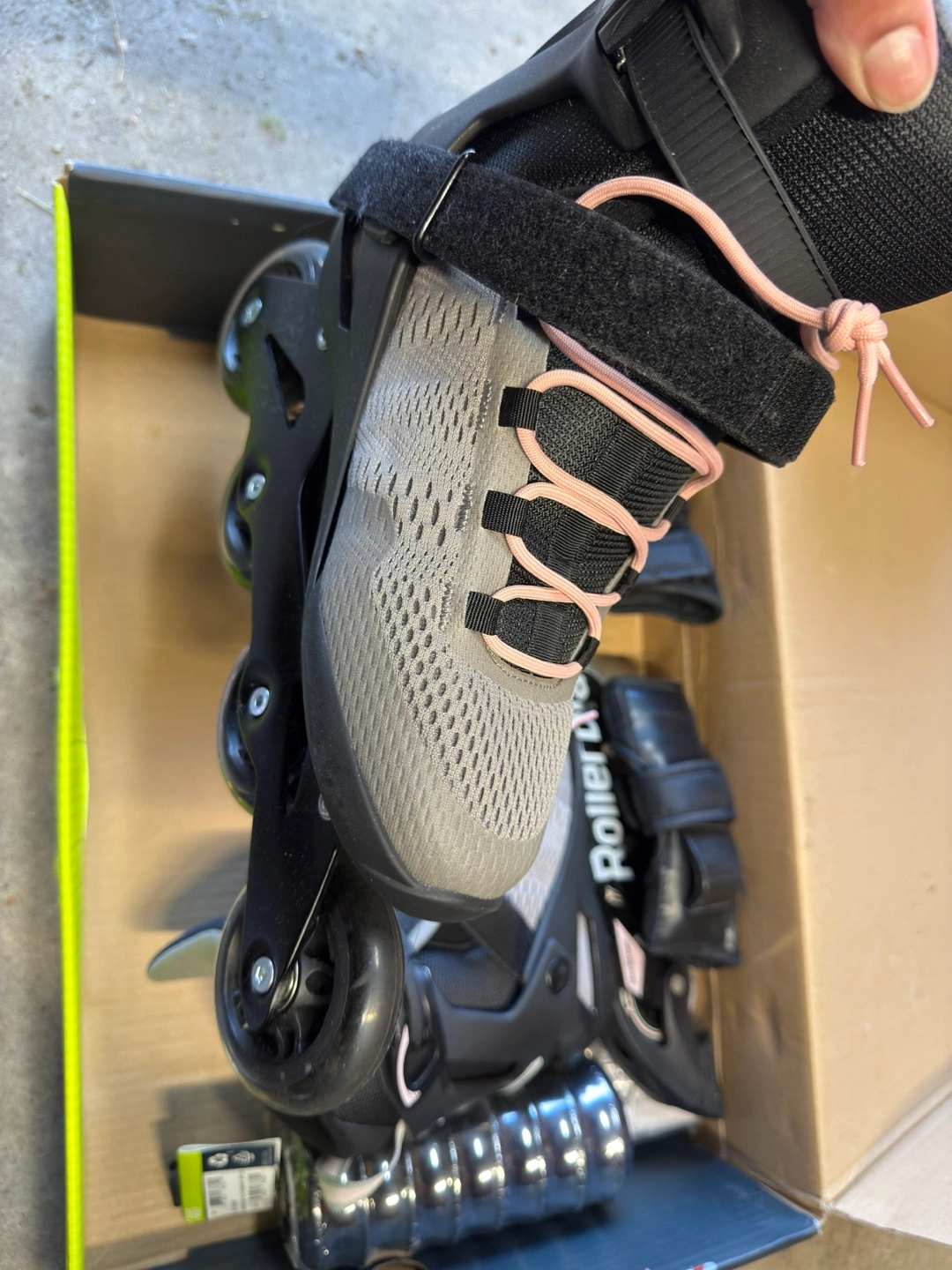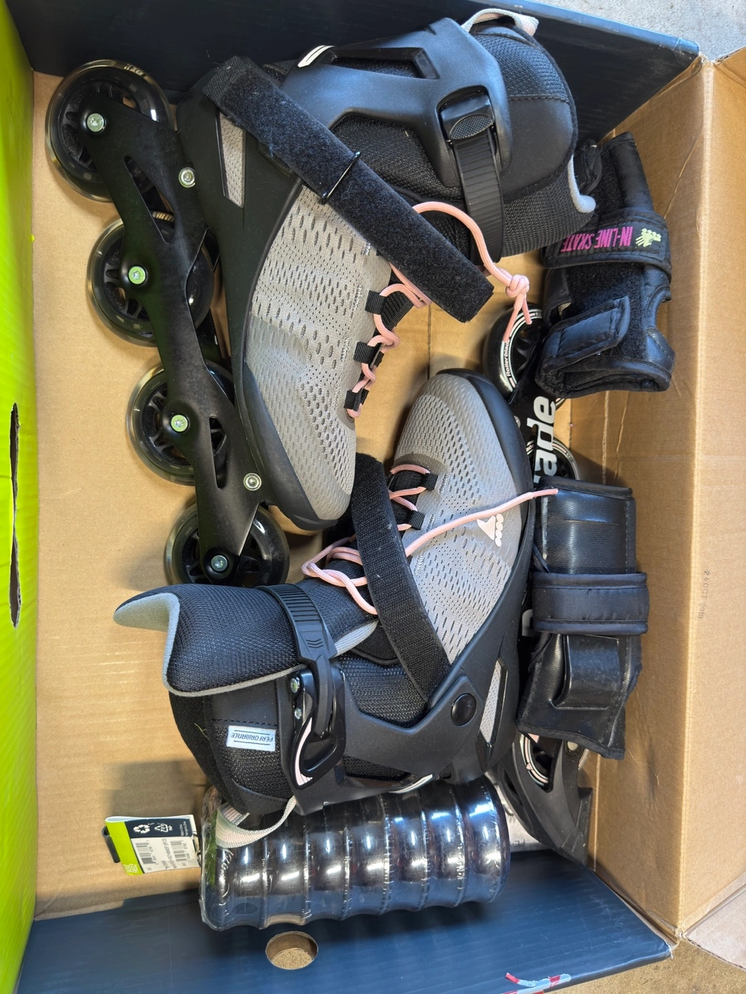 143Brand new women’s size 8 rollerblades. Purchased a few years ago but never ended up learning how to use them. They come with a brand new set of wheels that I purchased separately. Knee pads included for free.