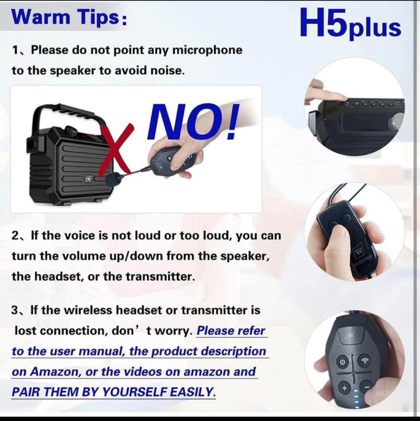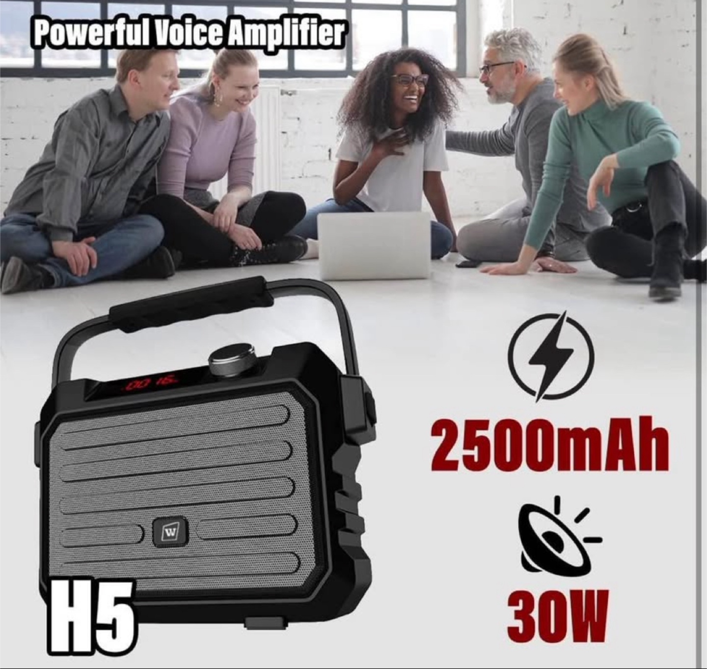 Powerful and Clear. The 30W voice amplifier can also be a pa system, makes your voice reach 1500㎡. And if one speaker is not loud enough, the TWS function can help you connect two of H5 speakers and enjoy surround powerful sound from the voice amplifier with Bluetooth