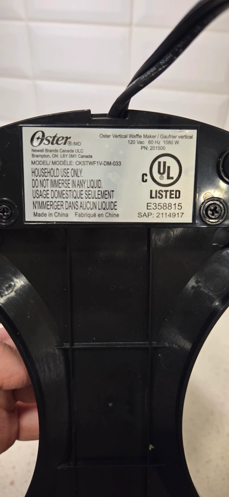I'm selling an Oster Vertical Waffle Maker. The model number is CKSTWF1V-DM-033. It's in great shape and ready to make some delicious waffles!