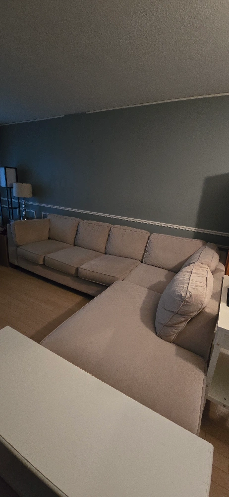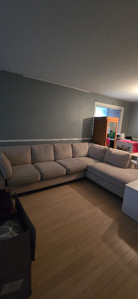 Giving away a comfy beige sectional sofa. It's in great shape and ready for a new home. Perfect for lounging and movie nights!