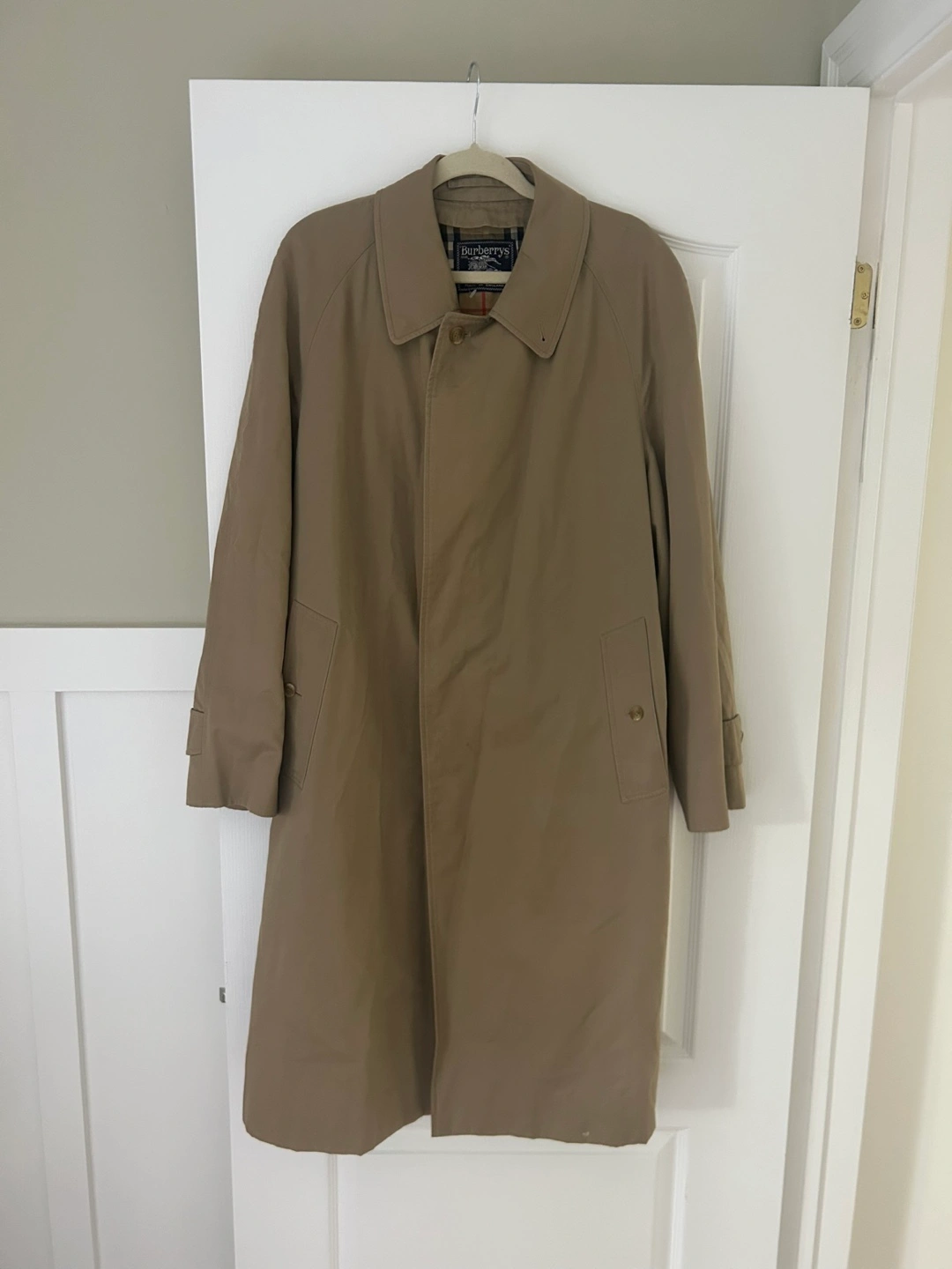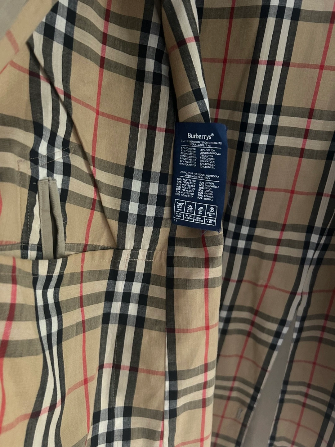 246Selling a classic Burberrys trench coat. It's in great condition and ready for a new home. The lining features the iconic Burberry check pattern. A timeless piece for any wardrobe!