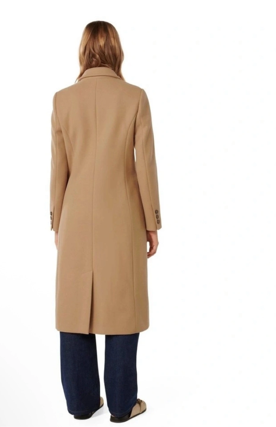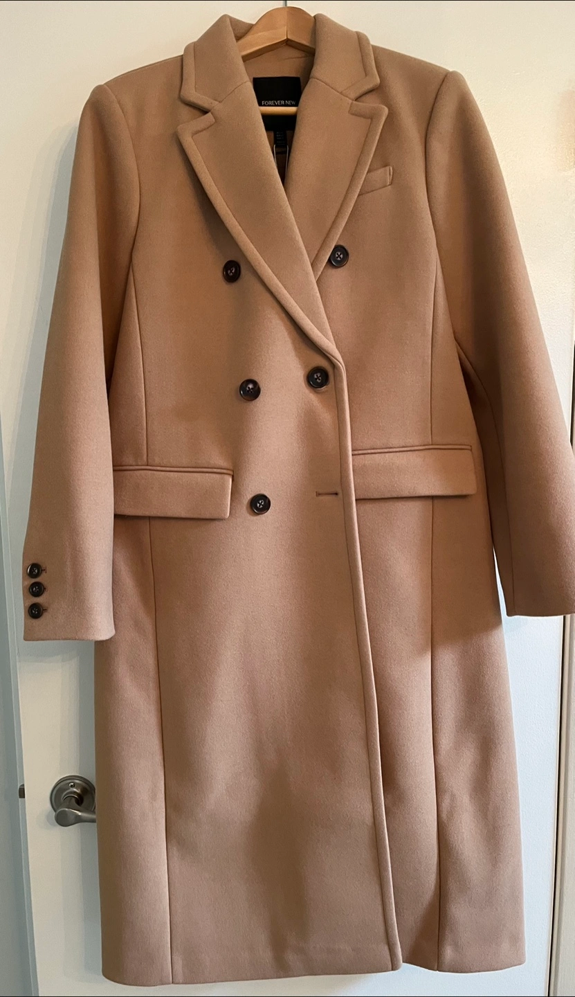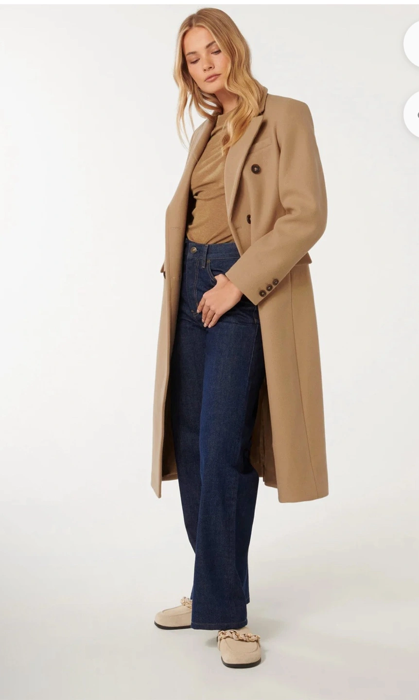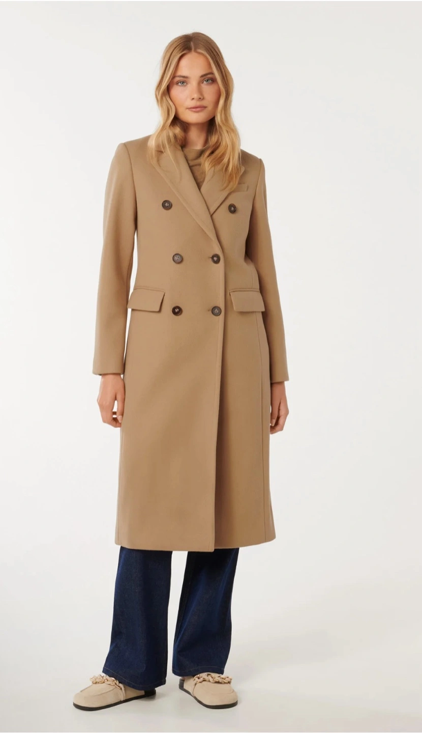This classic double breasted tailored camel coat by Ever New brings sophistication and elegance to your winter wardrobe.