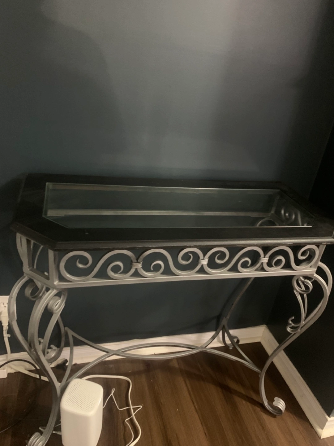 Buy & SellGlass Top Metal Console TableGlass Top Metal Console Table$24Selling a console table with a glass top and decorative metal frame. It's in good condition and would look great in an entryway or living roomConditionOkayWHERE TO MEET14 Mann StView MapSELLERverifiedRandyApple Blossom893 reviews2 chats·1 favorites·46 viewsSEND CHAT TO SELLERHi Randy! I’m interested in your listing.Hi Randy! I’m interested in your listing.Get the Karrot app to chatSign In to chat