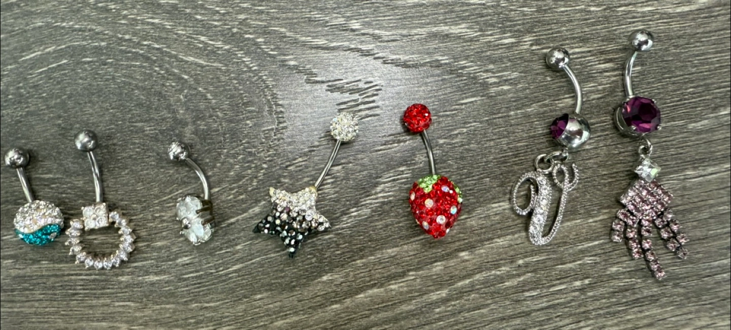 100Selling a collection of assorted belly button rings! They come in various designs, including jeweled, strawberry, star, and letter charms. Add a bit of sparkle to your style with these fun accessories $10 for 1 pc $80 for 10 pcs