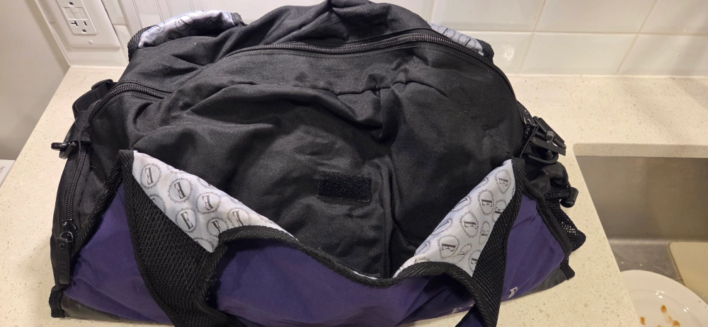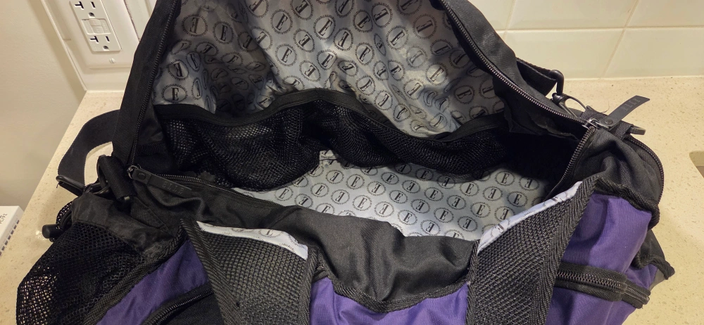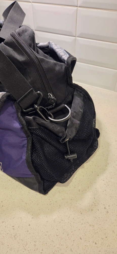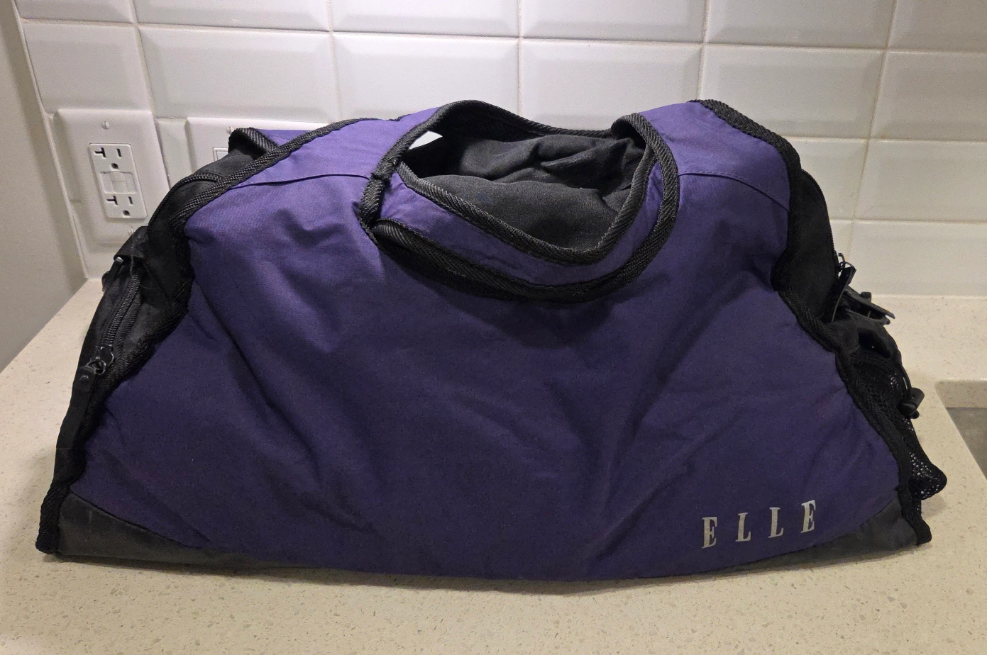 Elle duffle bag in a stylish purple and black colour combo! so many pockets inside and out, easy to carry. It's perfect for the gym or a weekend getaway!