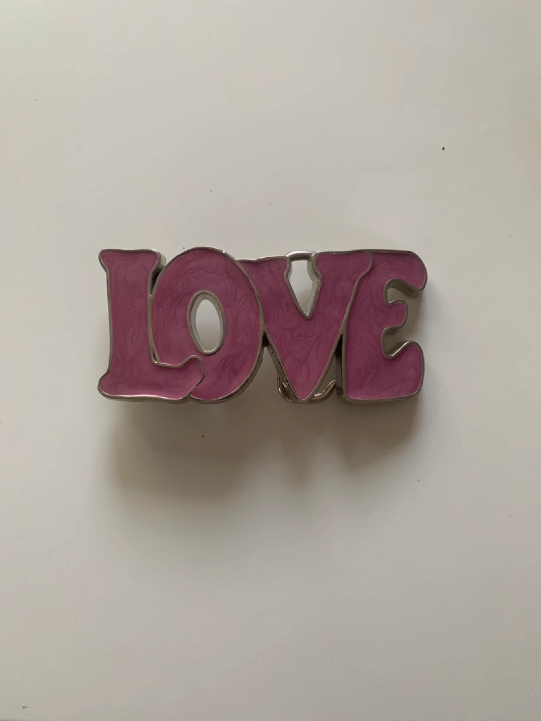 86Selling a vintage belt buckle that spells out LOVE! It's a unique piece with a nice, sturdy feel. The buckle is in great shape and ready to add some fun to your wardrobe