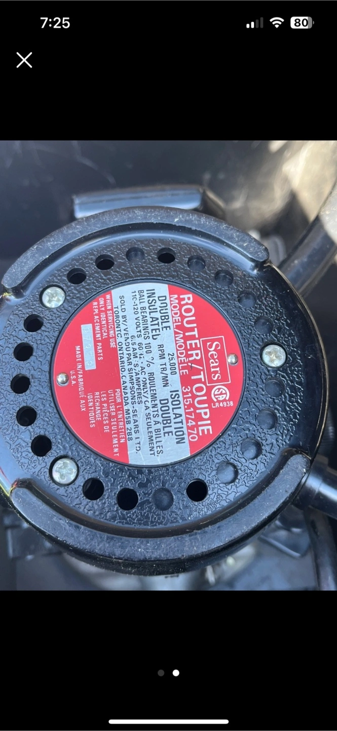 Selling a Sears Router/Toupie, model 315.17470. It features double insulation and operates at 25,000 RPM. A reliable tool for your woodworking