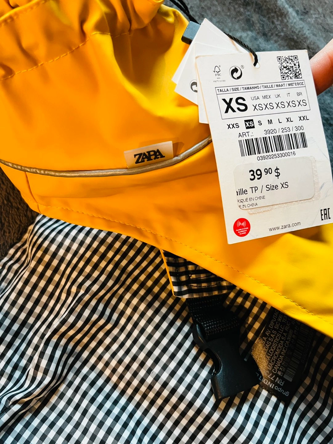 Brand new Zara Pet Yellow Water Repellent Dog Raincoat M/ XS