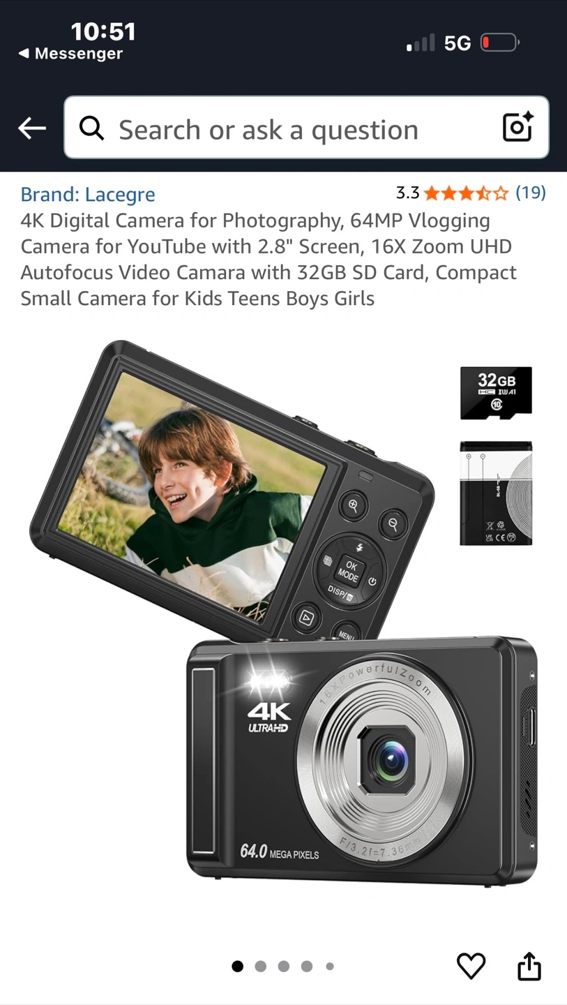 Selling a Lacegre 4K digital camera in excellent condition! It comes with a 32GB SD card and the original box.