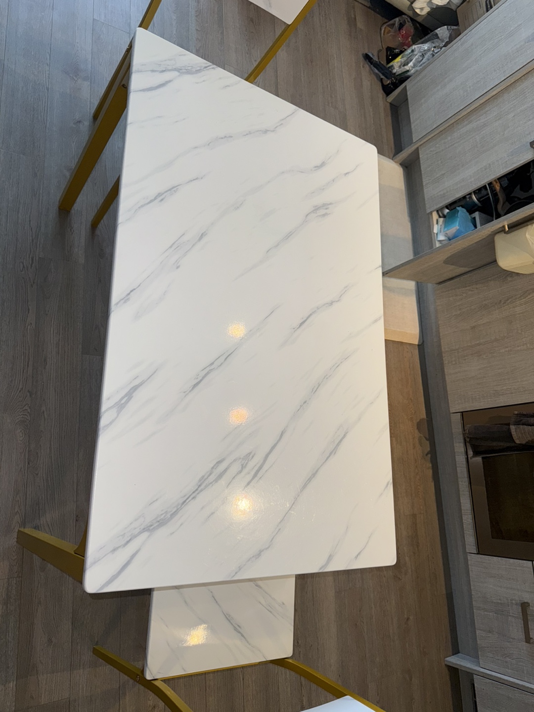 Dining Table Set - White Marble Top, Gold Frame