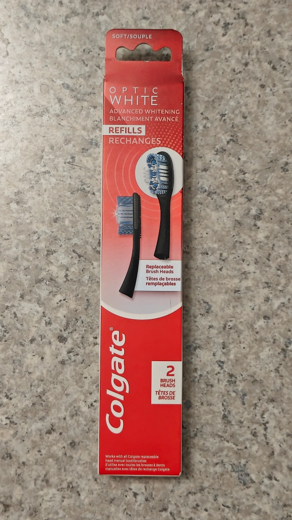 Selling a pack of Colgate Optic White Advanced Whitening toothbrush refills. This includes 2 brush heads that are replaceable and work with all Colgate replaceable head manual toothbrushes