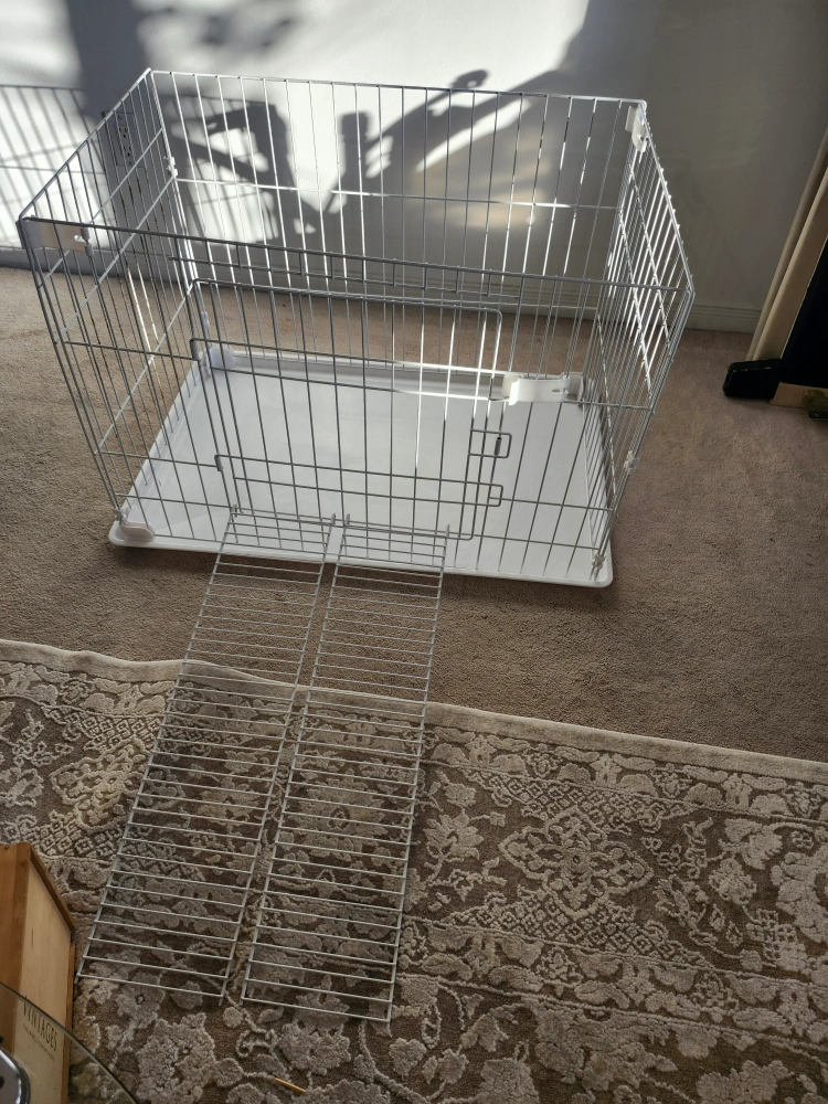 Selling a metal wire dog crate. It's in great shape and ready for a new furry friend. Includes a tray and a wire divider panel.