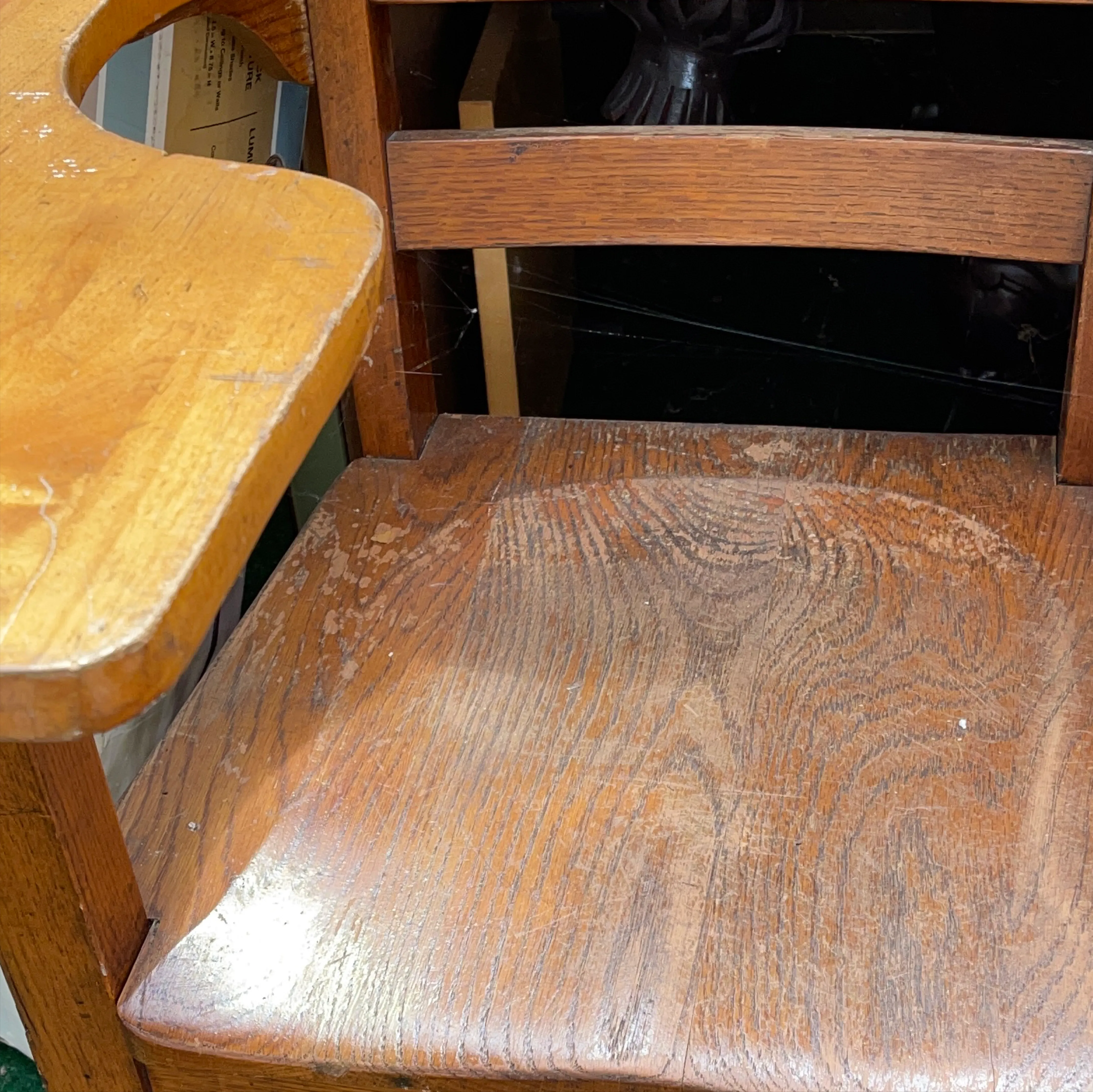 Selling a vintage wooden high chair. It shows some signs of wear, as you can see in the photos, but it's still sturdy and has lots of character. Perfect for a child's room or as a decorative piece!