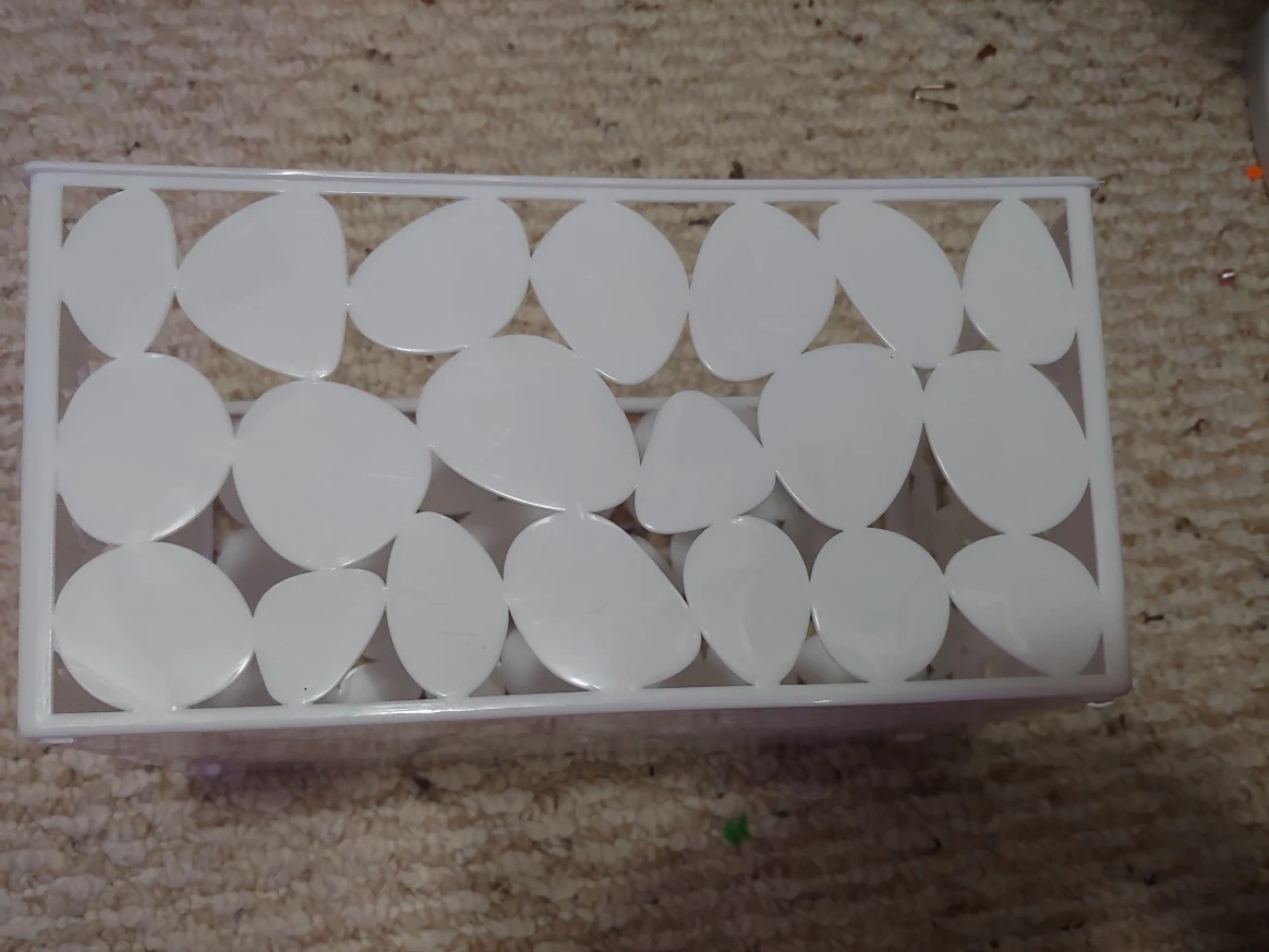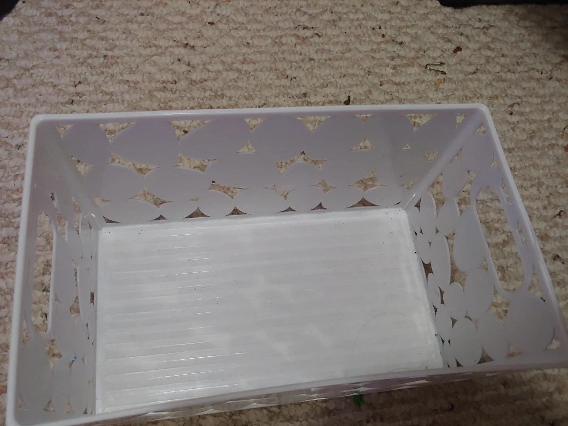 Selling a cute white plastic storage basket! It's in great shape and perfect for organizing things around the house