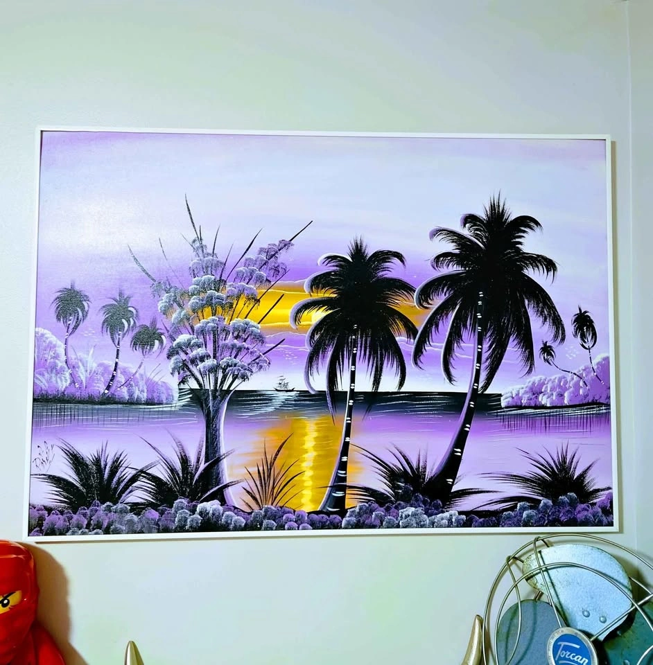Vintage 1980s 1 Of 1 Oil Hand Painted Hawaiian Art Piece. Excellent condition, normal surface wear 8/10. In its original Metal Frame & signed by the artist! Size: 42 x 32. Pickup or Local delivery only! Oshawa Windsor Street.
