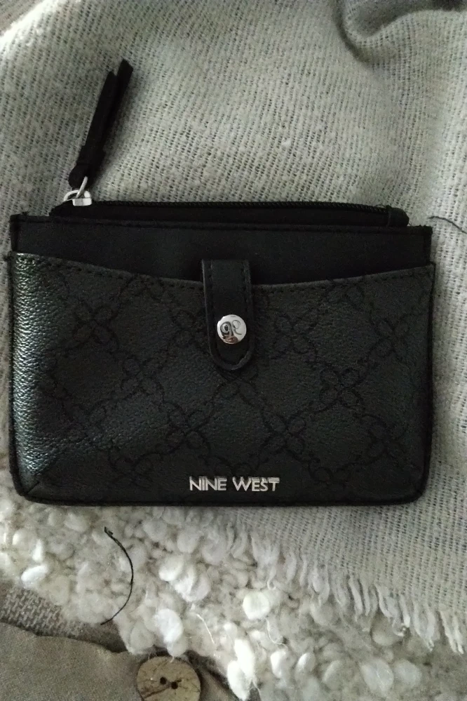 Selling a Nine West card holder in black. It has a zipper and a snap closure. It's in great condition!