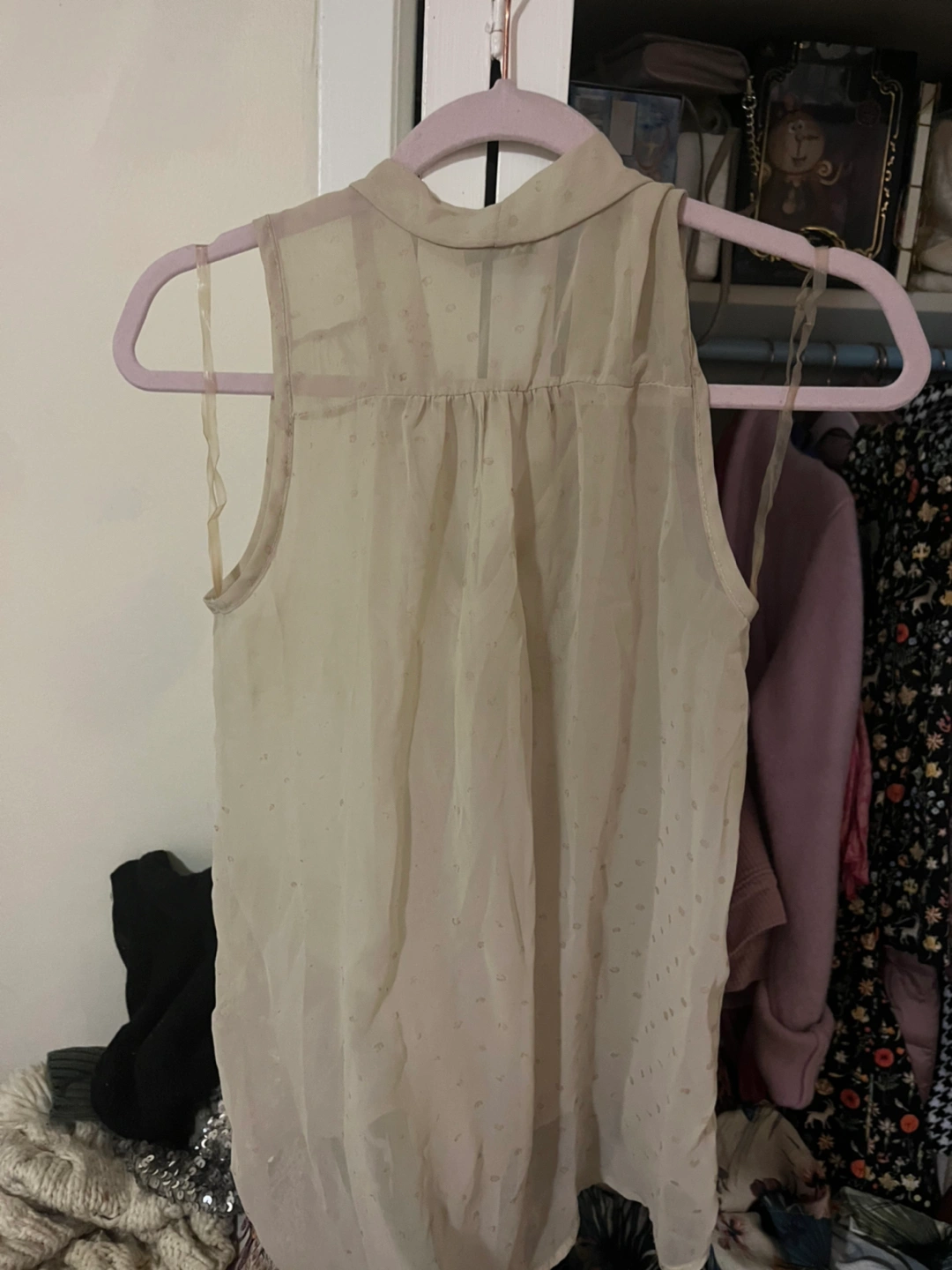 Off white blouse Good circles are quite faded, price shows that However top is in great condition otherwise Bought at Boutique and am downsizing so I need to let this go Will meet anywhere along the TTC line for this one :)