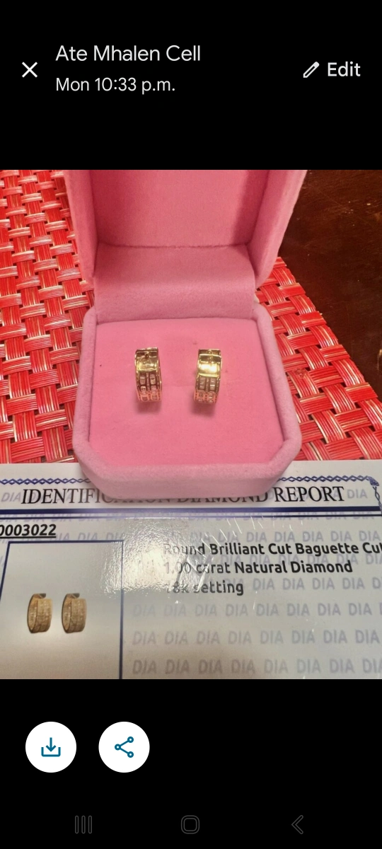 Selling a pair of beautiful earrings! They feature a round brilliant cut baguette with 1.00 carat natural diamonds and an 18k gold setting
