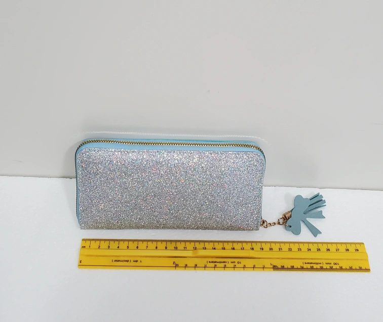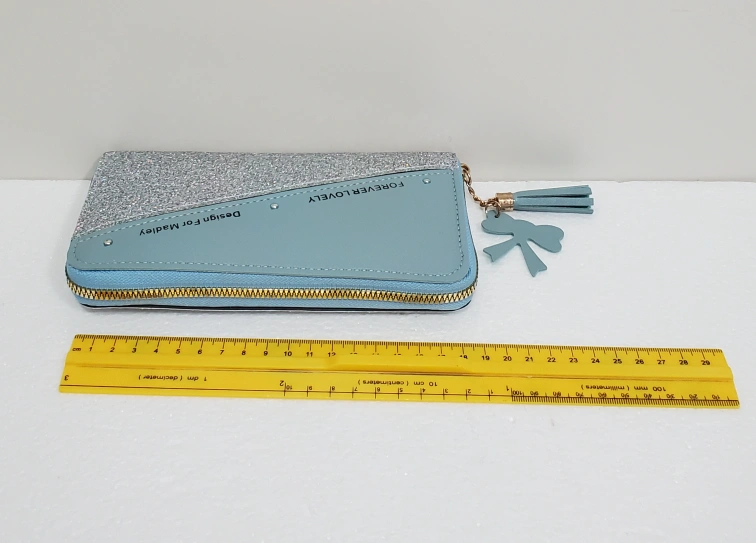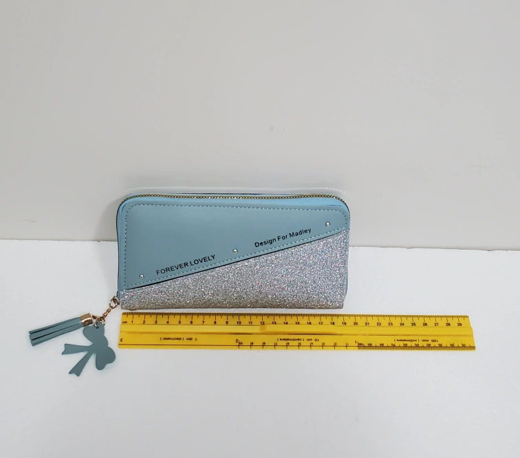 Check out this cute wallet from Forever Lovely! It has a light blue and glittery silver design, perfect for adding a bit of sparkle to your day.