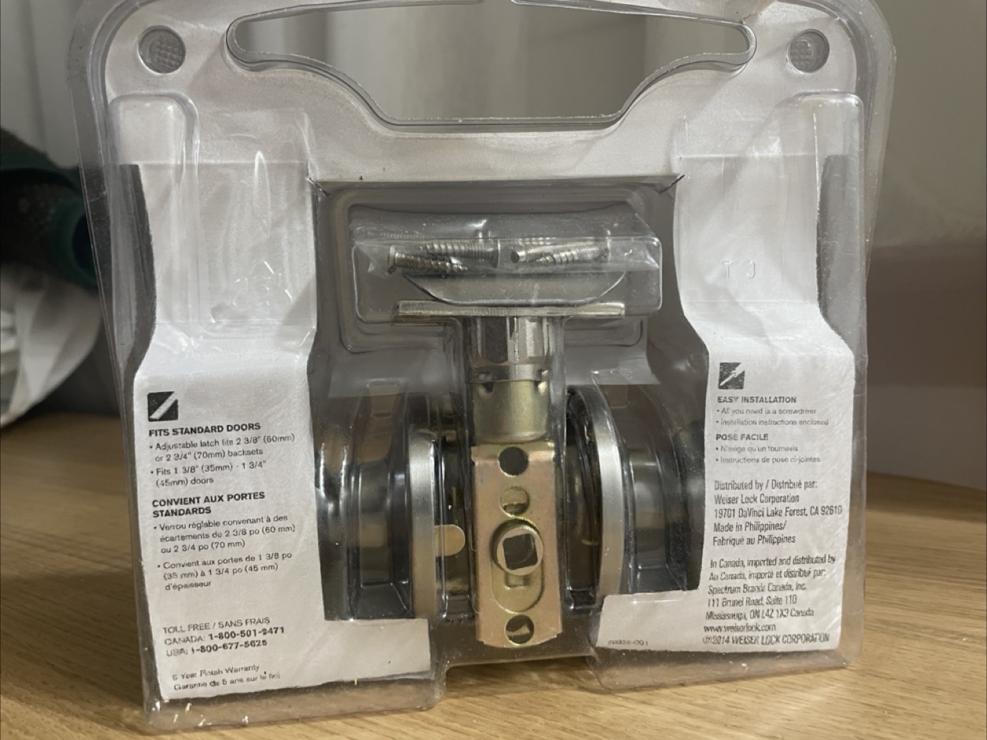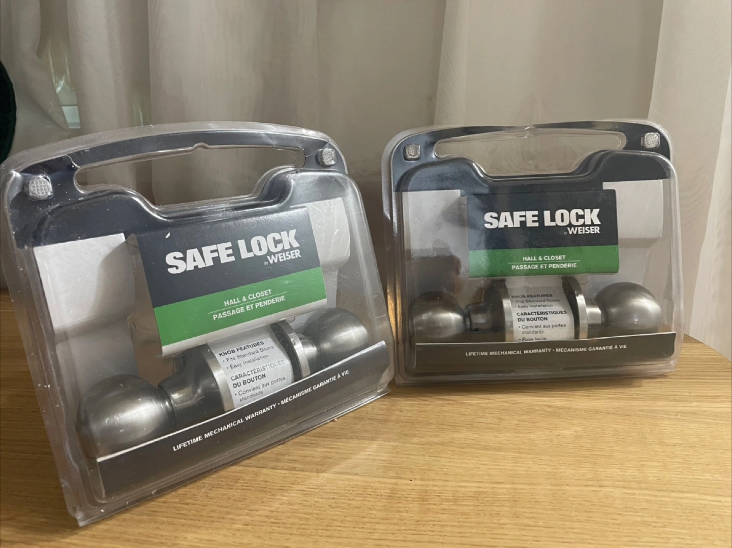 Selling a Weiser Safe Lock knob for hall and closet doors. It fits standard doors with an adjustable latch for 2 3/8" (60mm) or 2 3/4" (70mm) backsets, and 1 3/8" (35mm) - 1 3/4" (45mm) doors. Easy to install, all you need is a screwdriver! Includes installation instructions