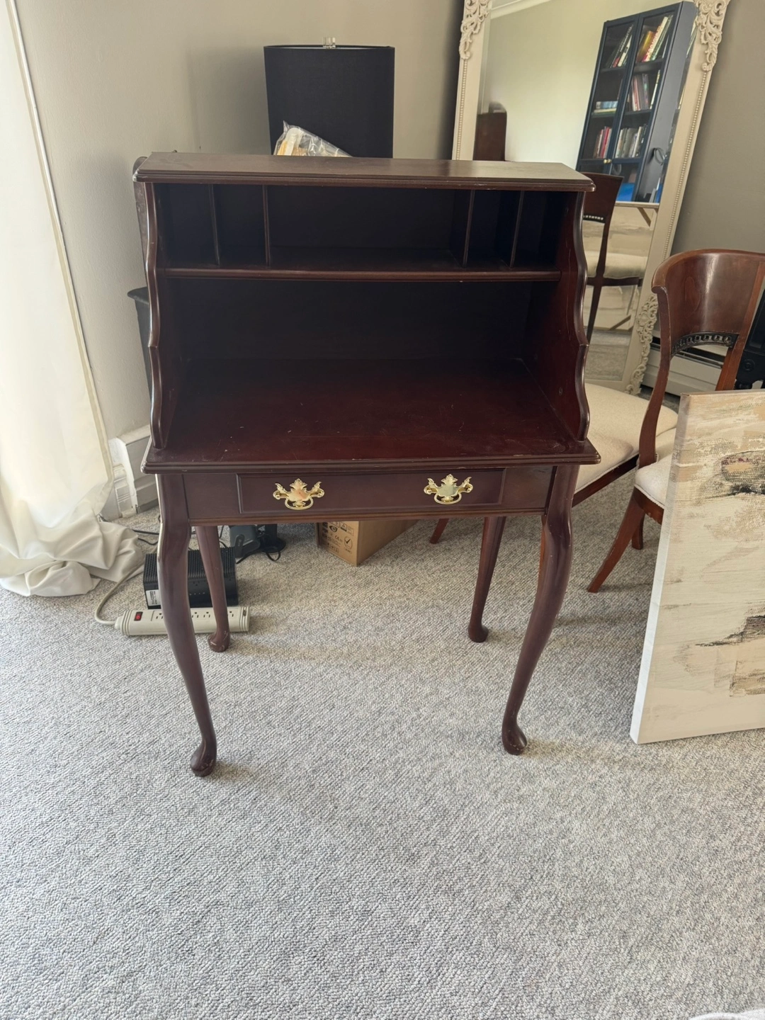 Antique desk with some scratches that can easily be covered. I love this item but, in reality I don’t have the space for it.
