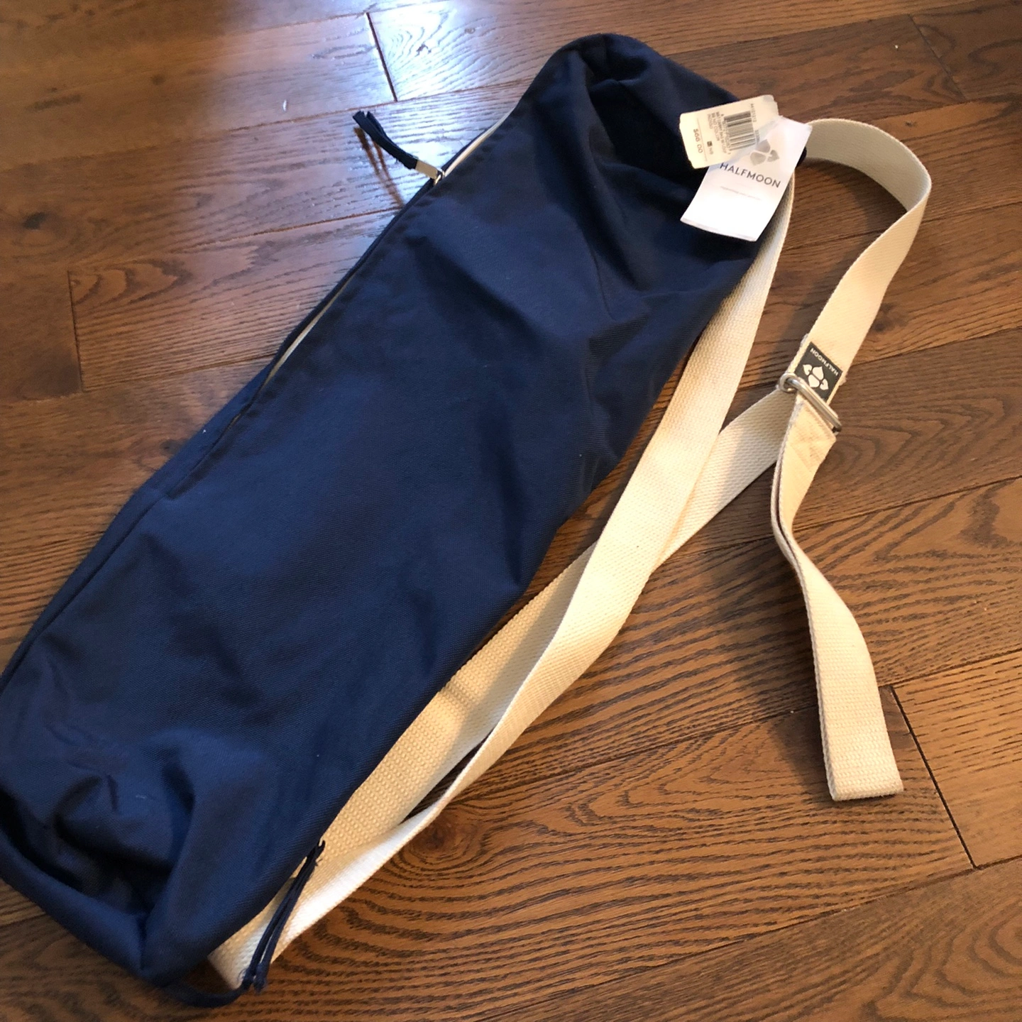 Get your yoga on with this HALFMOON yoga mat bag! It's in great condition and ready to carry your mat to your next class. The bag is a lovely indigo colour and features a convenient carry strap. New tagged- bought for $66