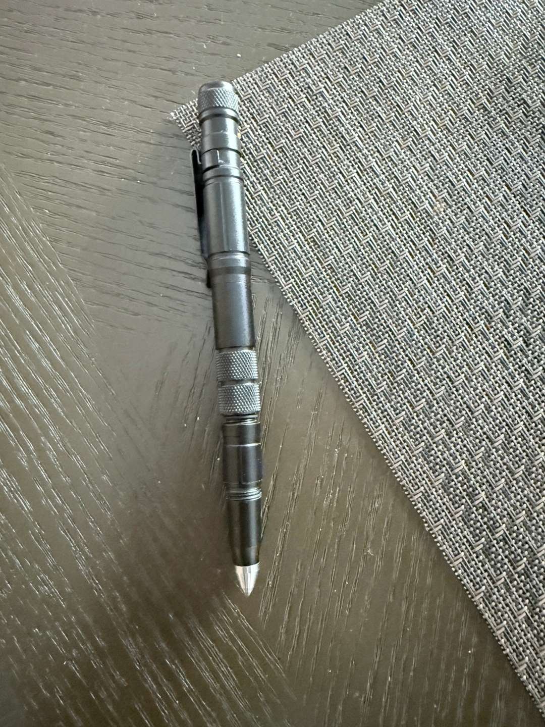 Selling a black tactical pen. It appears to be in good condition and ready for use!