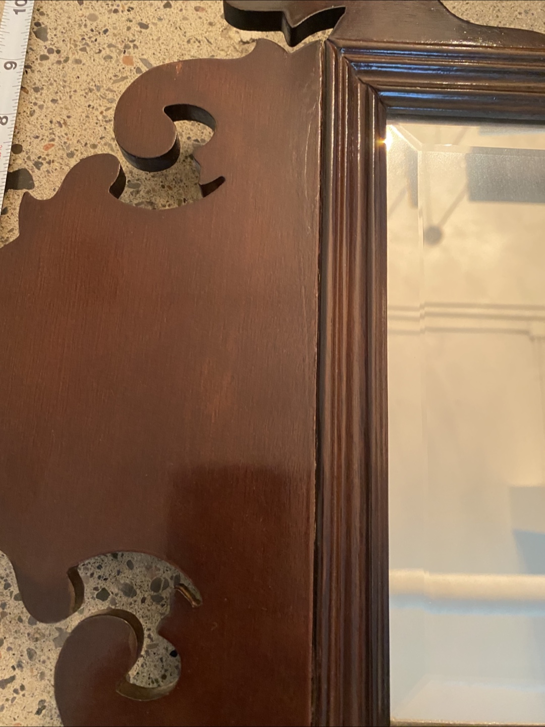 In good shape but not perfect. See the unevenness of the finish in one of the photos.